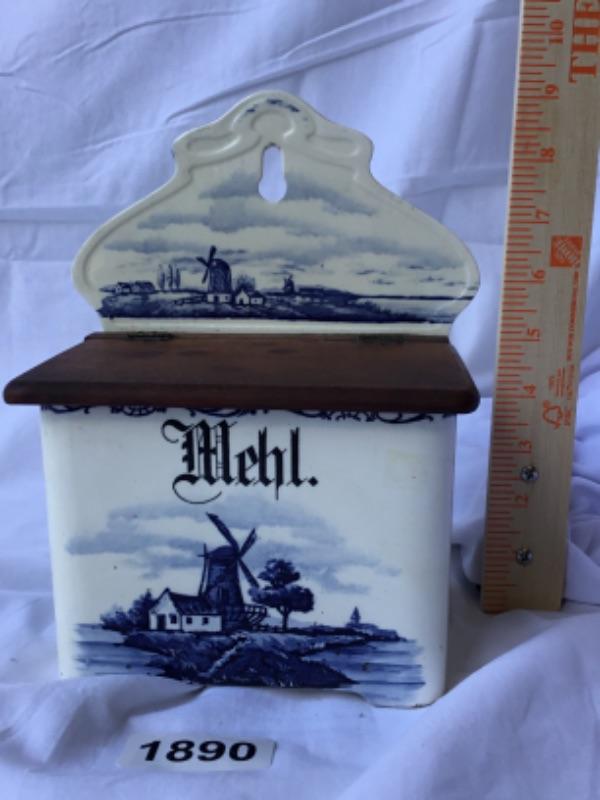 Waechtersbach German Blue Art Pottery Wall hanging Box with Wooden lid lot 1890