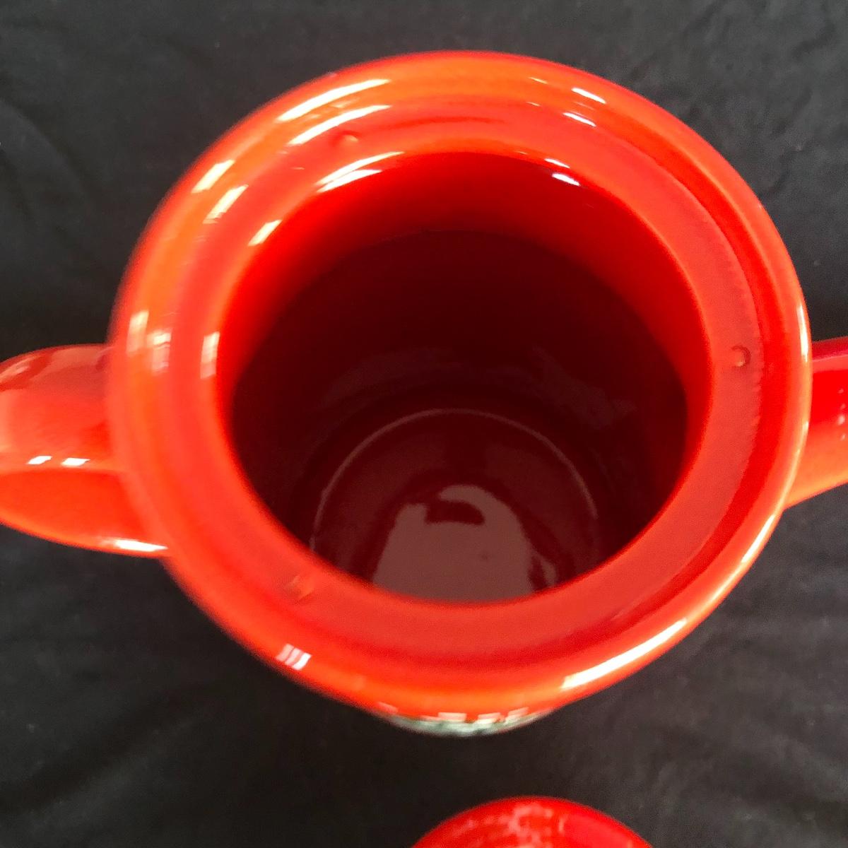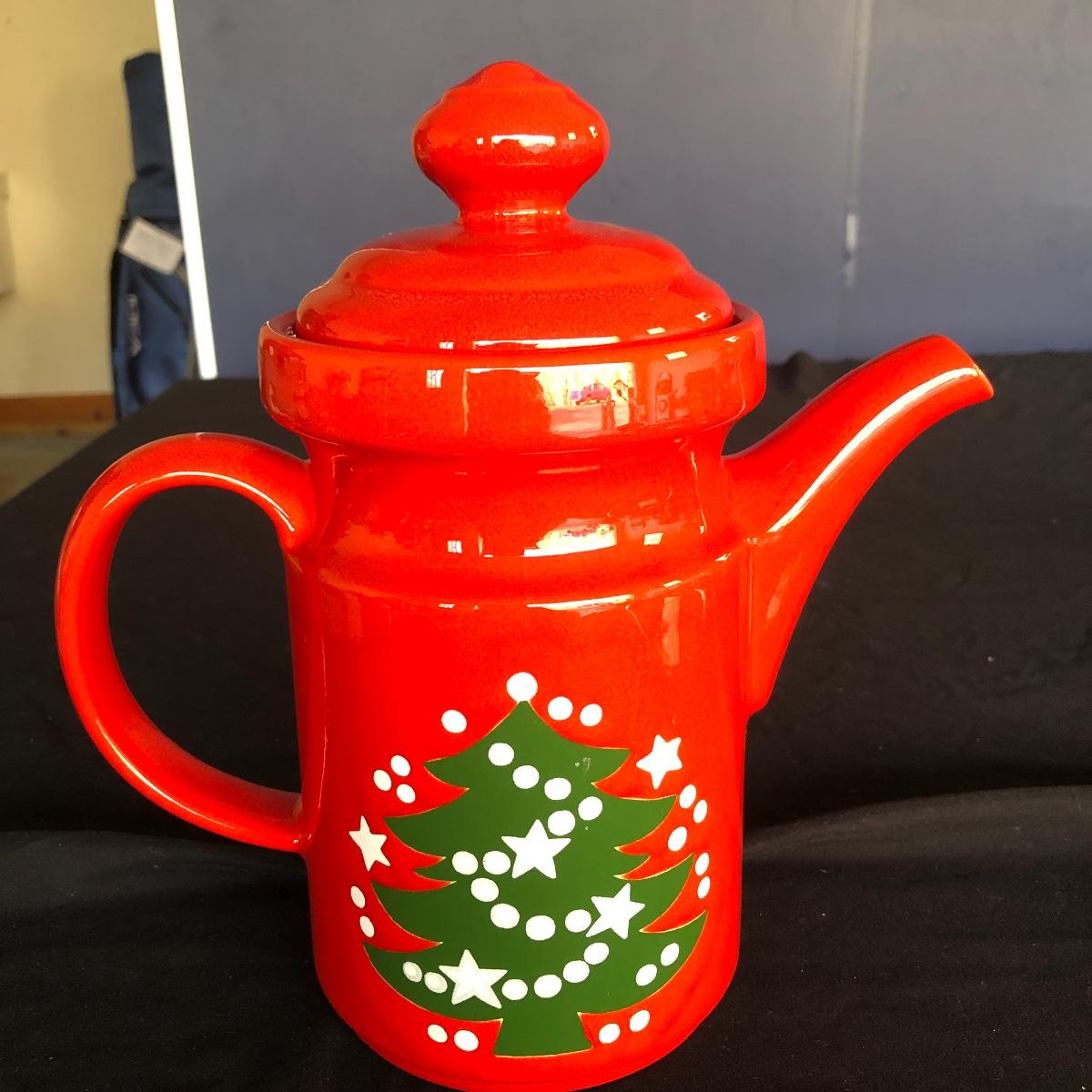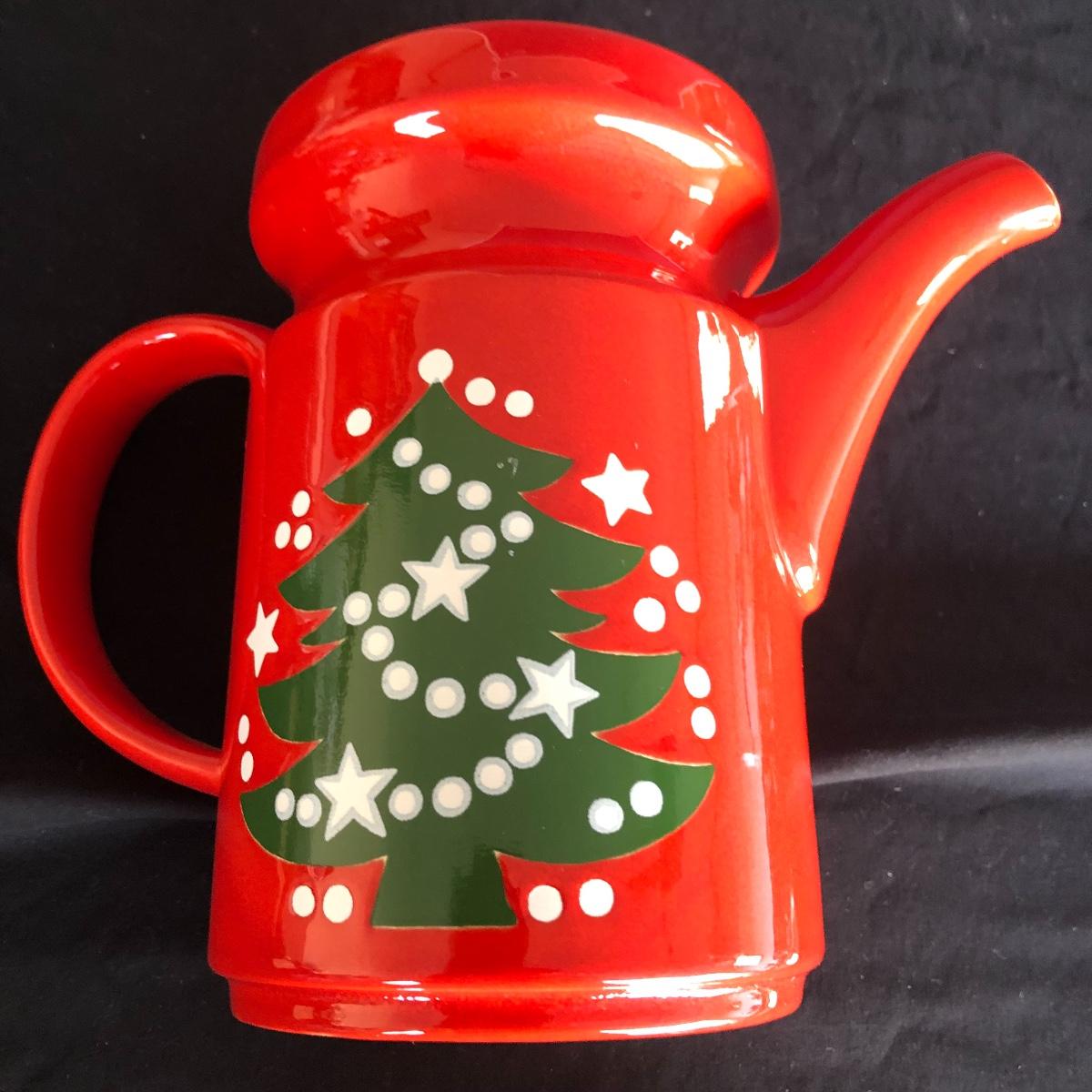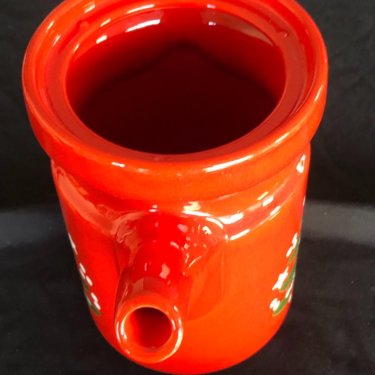 Waechtersbach W. Germany Christmas Coffee Set. This set includes four coffee mugs, a coffee pot (4.5” in diameter and 9.5” tall) and serving tray (14” x 9”.) Shipping Available.