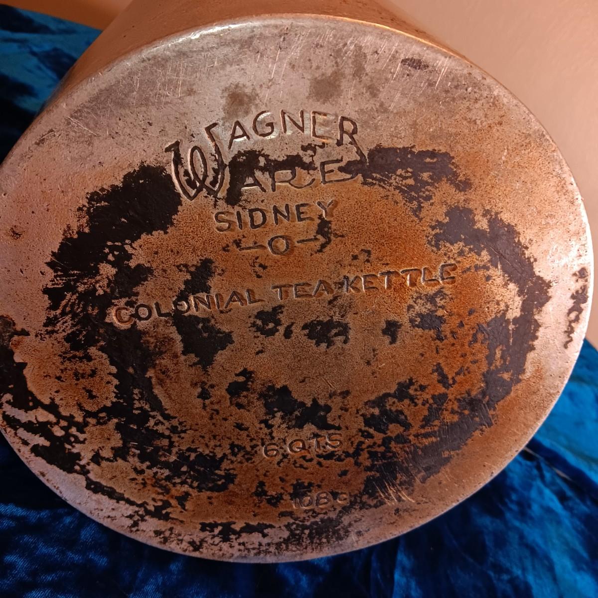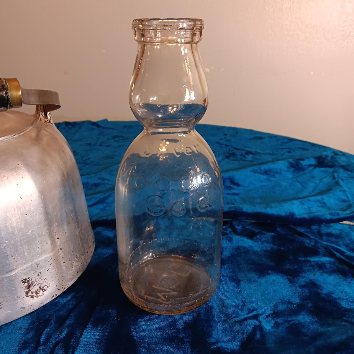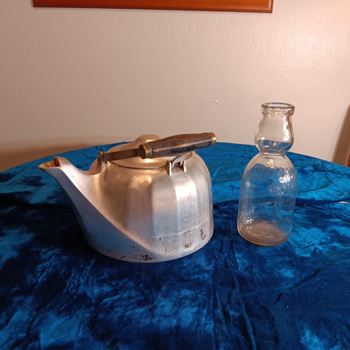 WAGNER WARE COLONIAL TEA KETTLE & AN OLD MEADOW GOLD MILK BOTTLE