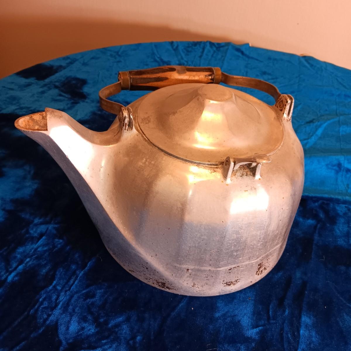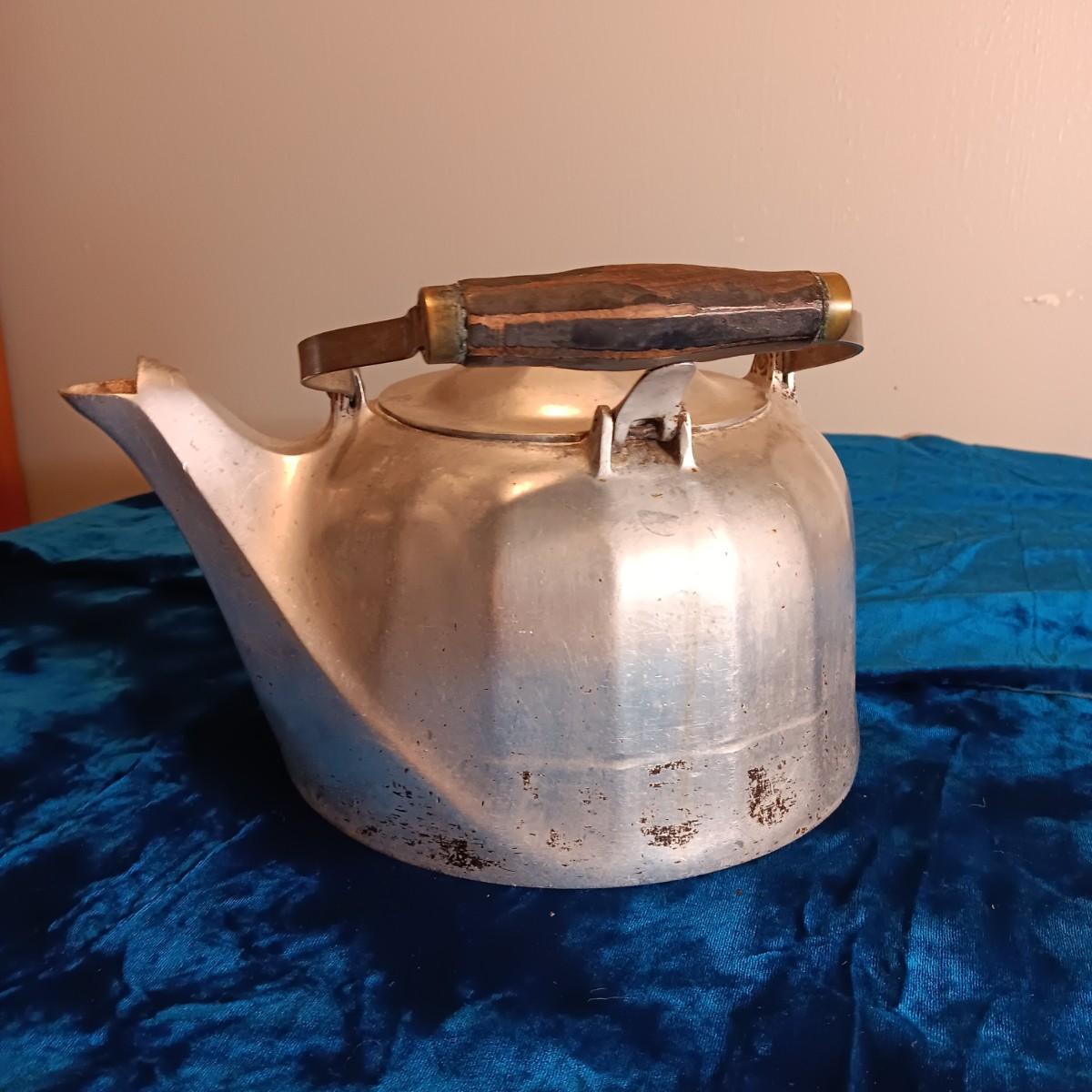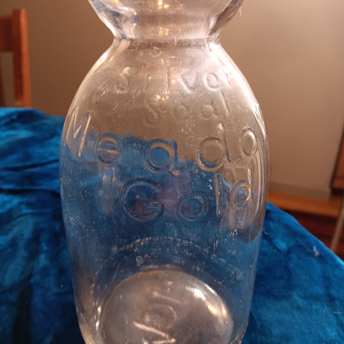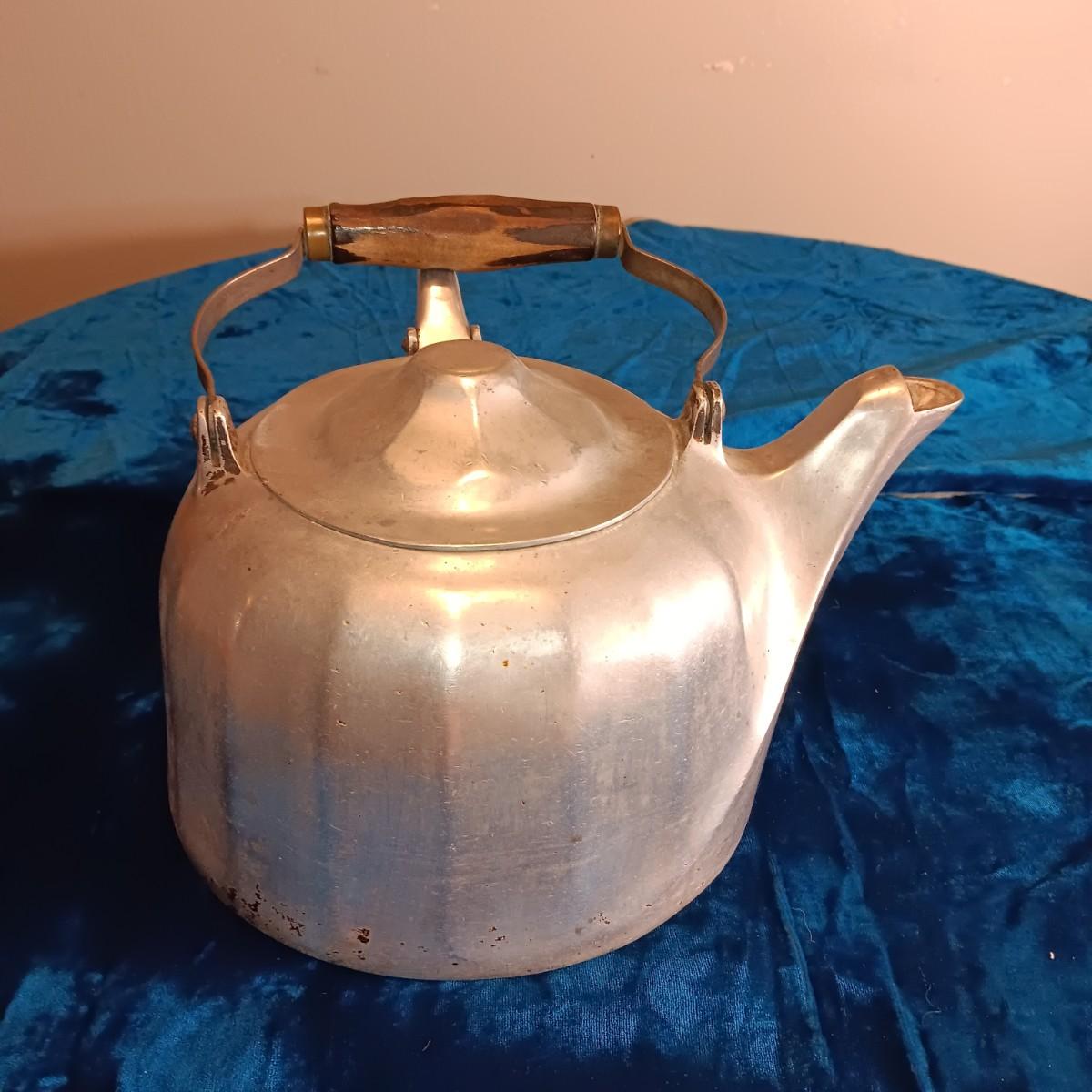 WAGNER WARE COLONIAL TEA KETTLE & AN OLD MEADOW GOLD MILK BOTTLE