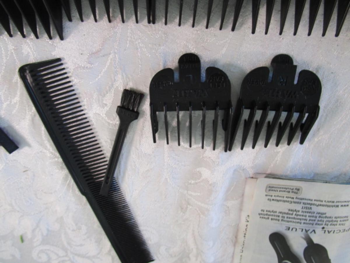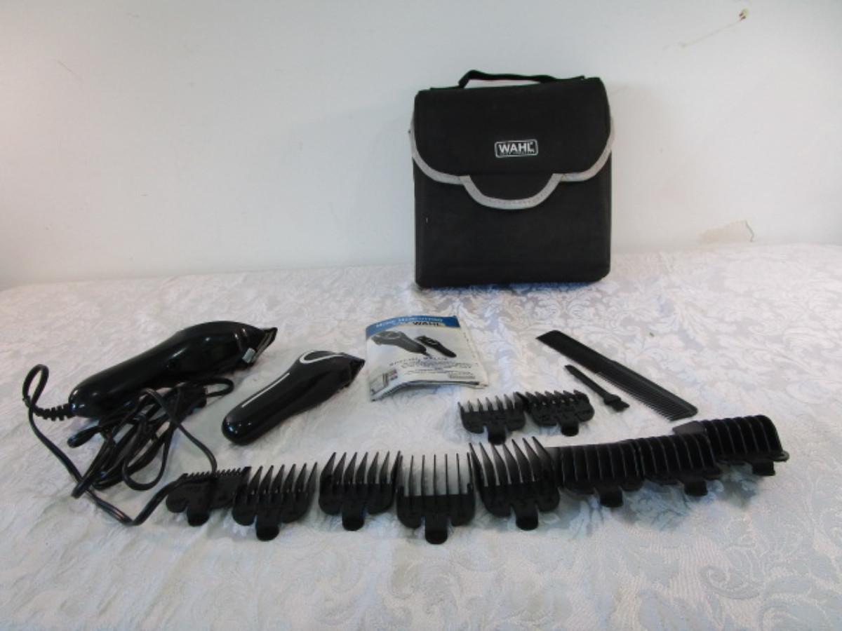 Has 1 electric hair trimmer/cutter, 1 battery operated hair trimmer/cutter, accessories, comb , trimmer cleaning brush & case