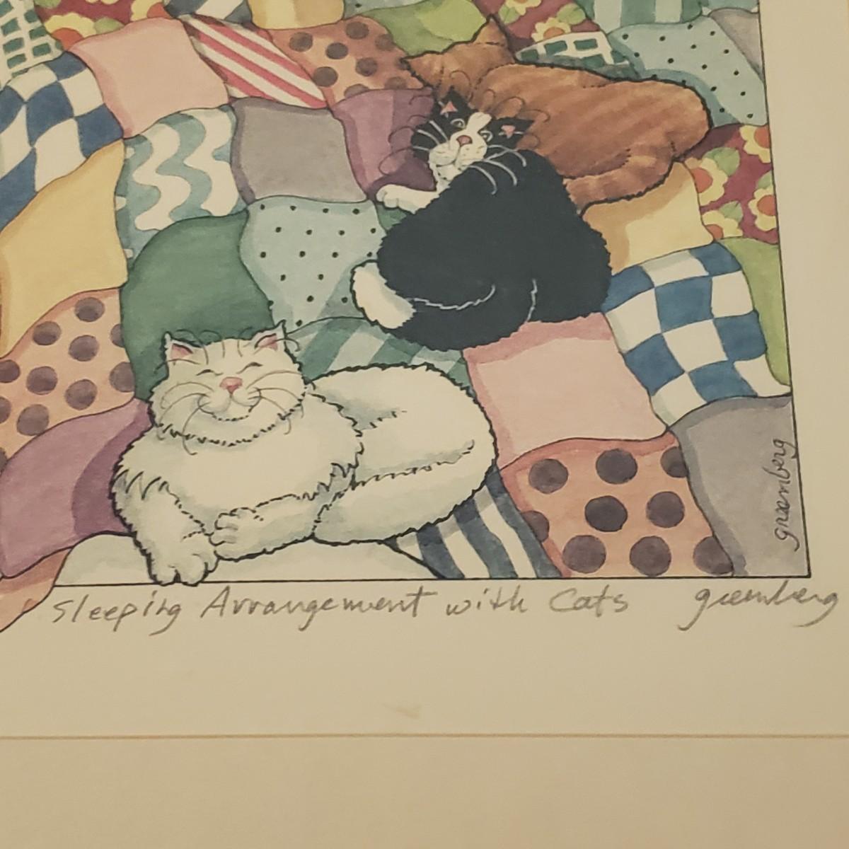 "Waiting" & "Sleeping Arrangements With Cats" by F. Greenberg - Signed & Numbered Prints (PB-BM)