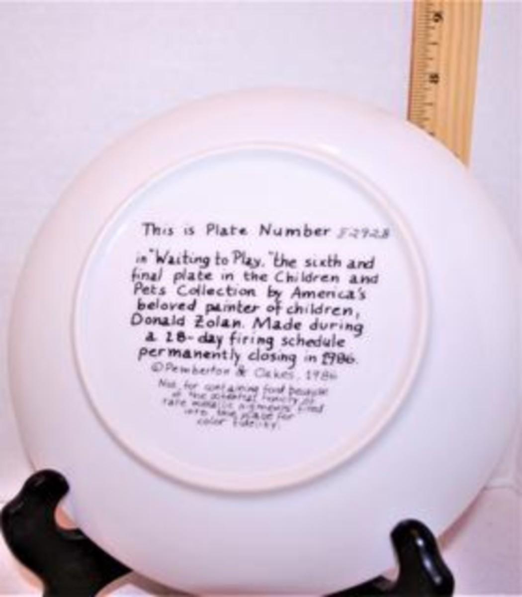 "Waiting to Play" by Artist Donald Zolan - Includes : Plate #8292B, 7½" Diameter & Date Closing 1986