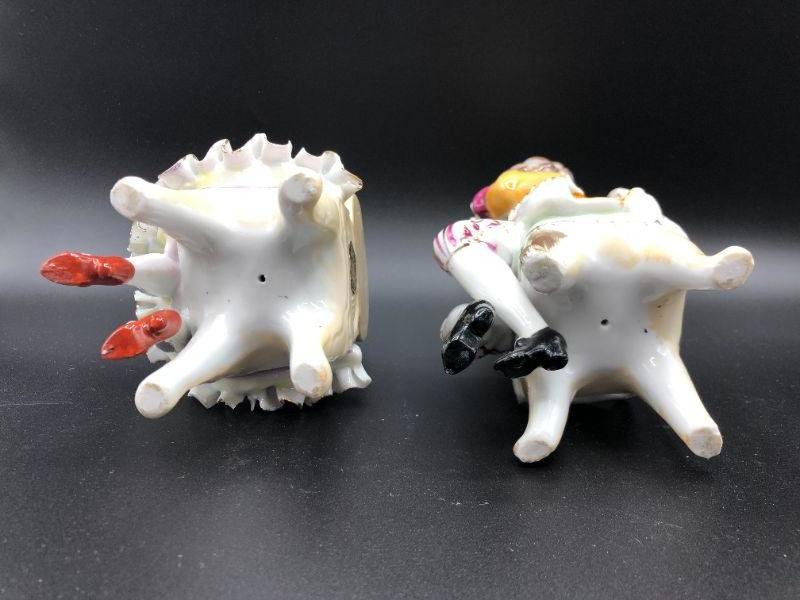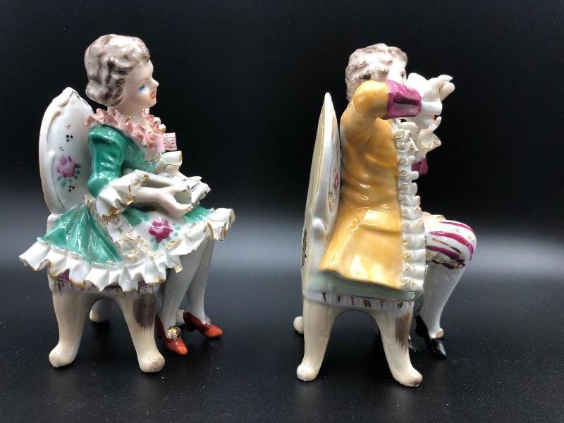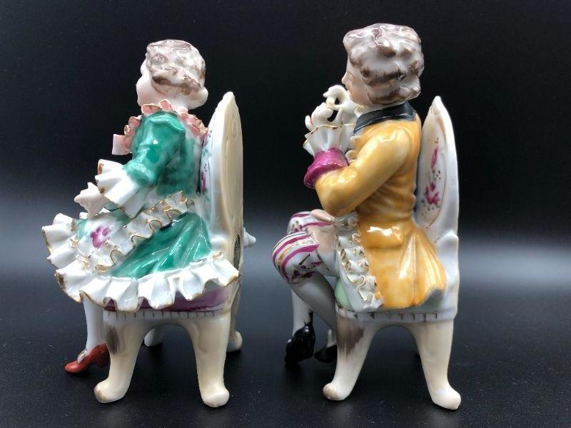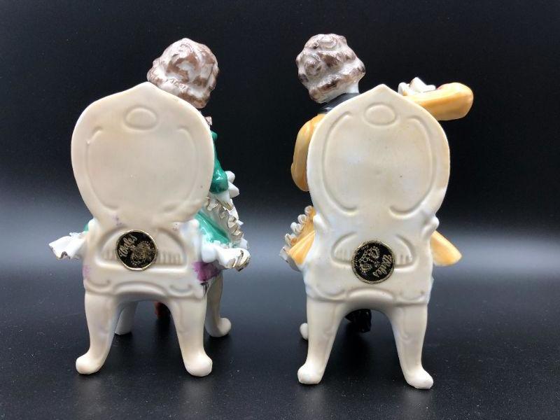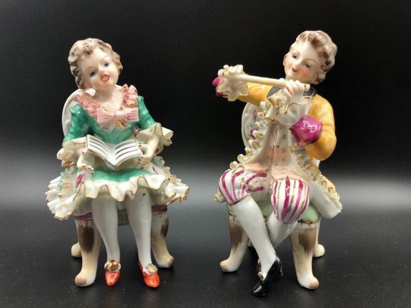 Wale Black & Gold label - Musician Couple Flute Player & Singer - Two Dresden Style Figurines