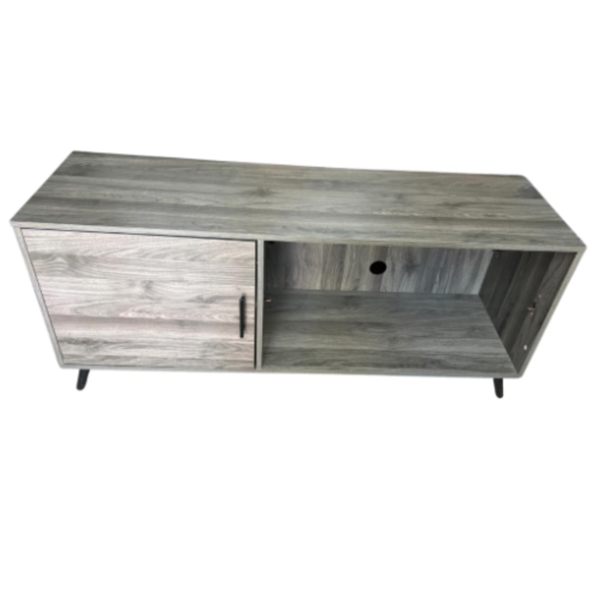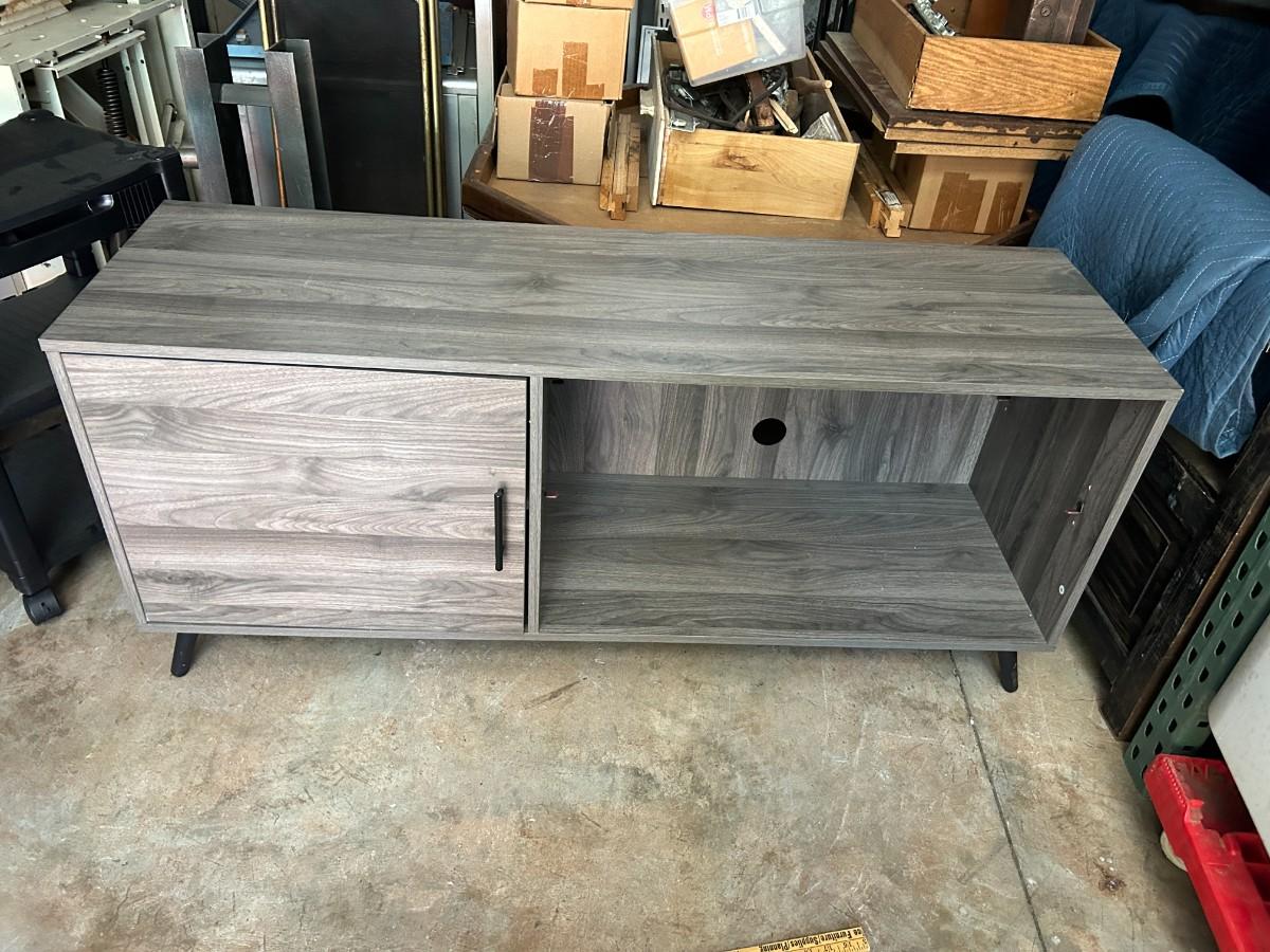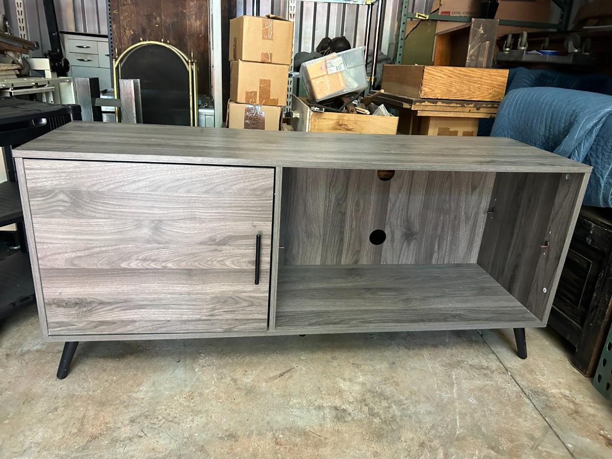 Walker Edison French Oak Gray Entertainment Center with Wood Legs, Single Cabinet