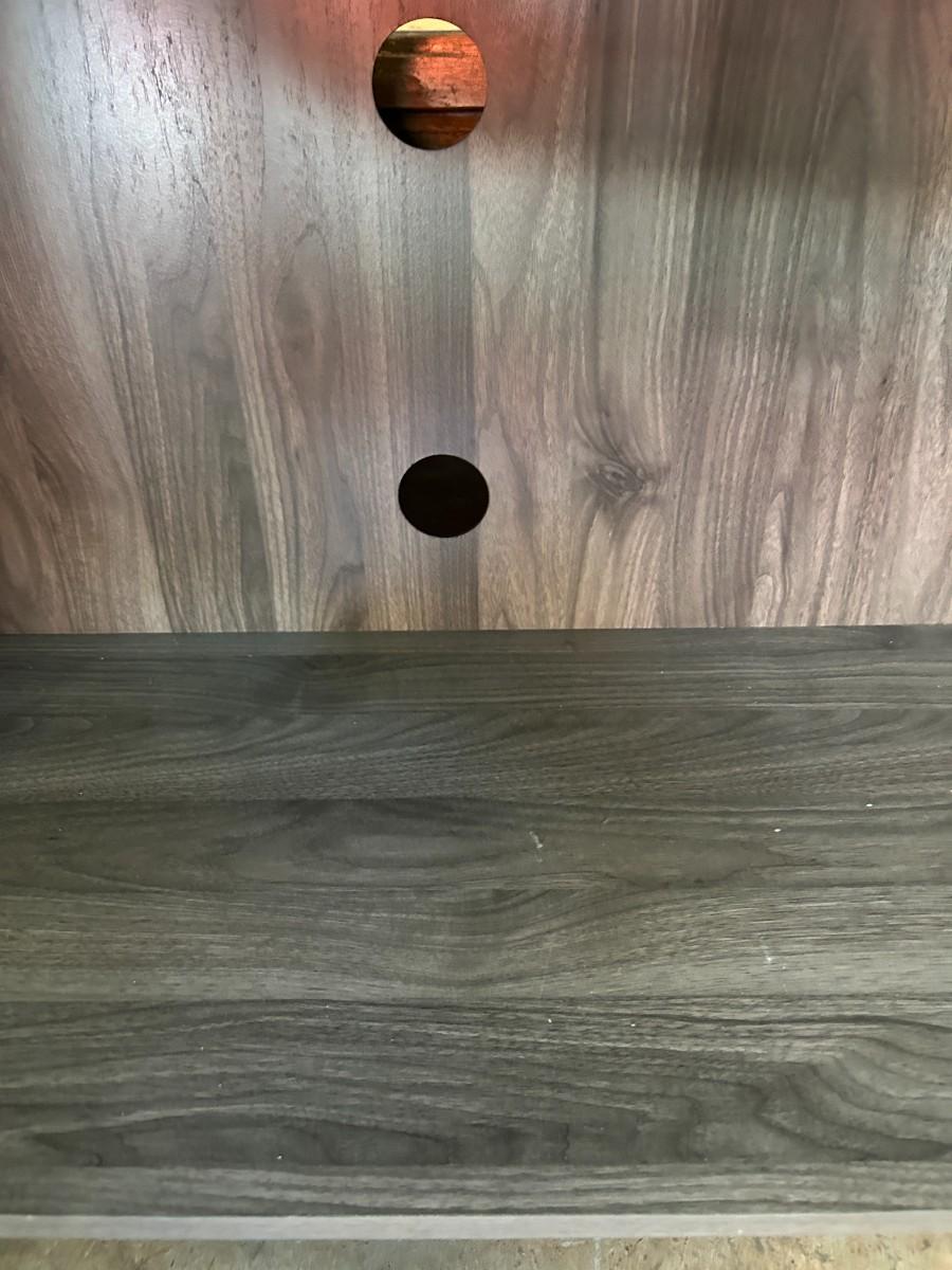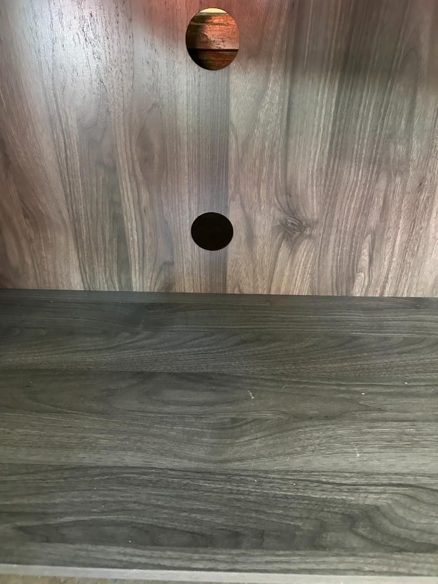 • It has an open space on the right with two pre-cut holes to conceal wiring.