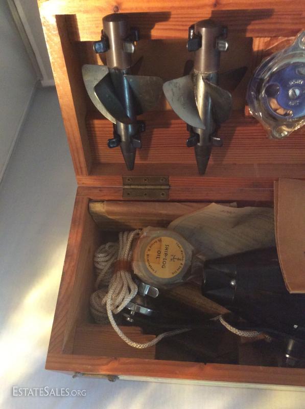 Kit in wooden box with instruction Manuel. Box includes: Register, 2 Shoes, 2 Rotators, 2 Sinkers, 1 60ft. Of line, 2 coils of 30ft. Of line 1 oil feeder. Excellent condition in 1979 owner had it repaired, receipt is included, cost of repair was $225.00 in 1979! Made in England. Beautiful set.