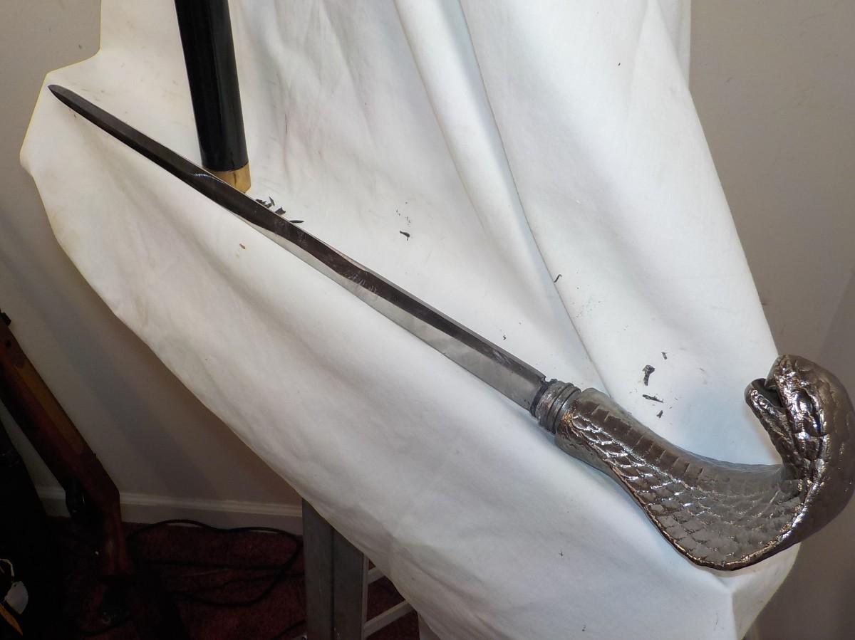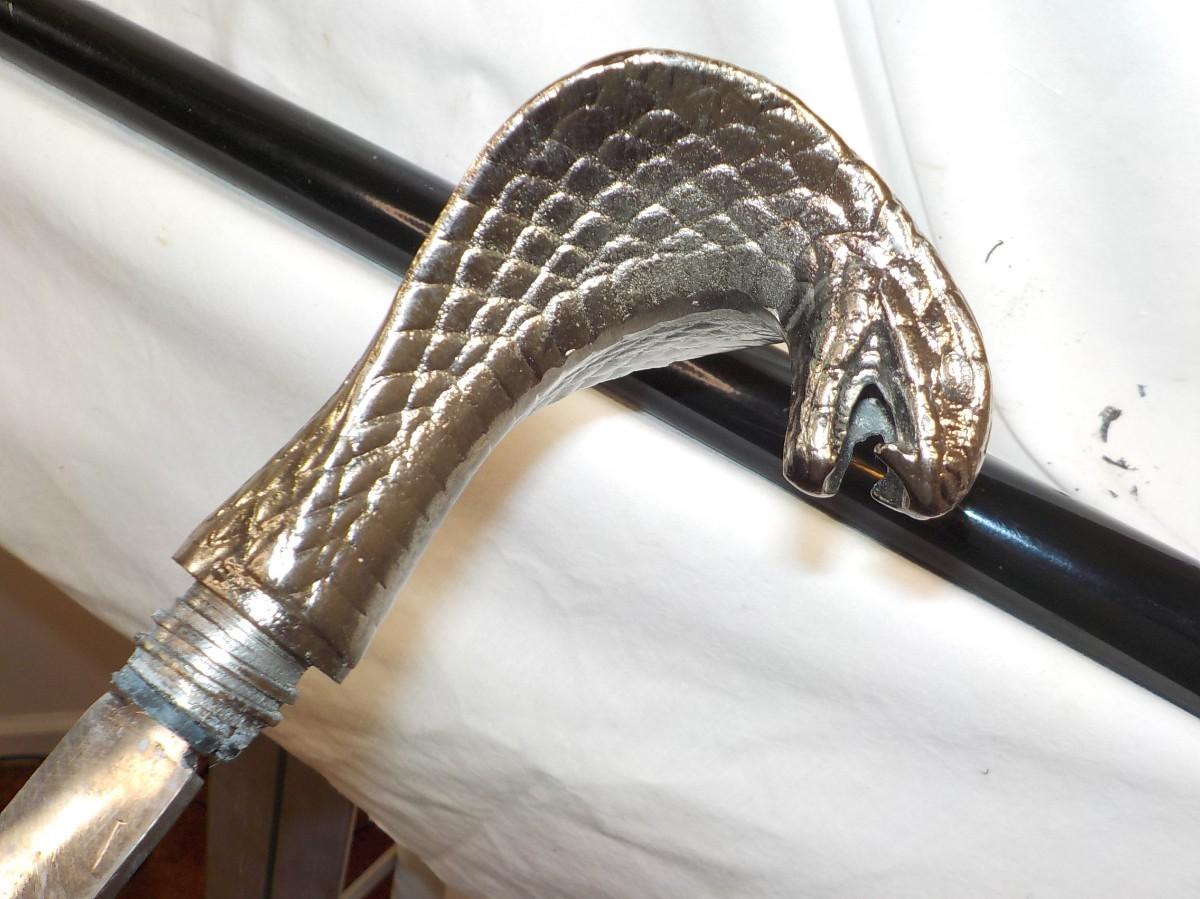 Walking Cobra cane with a large lettler opener.est $75 to $150.
