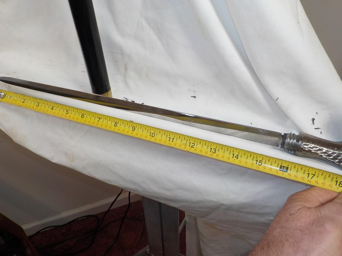 Silver metal Not sterling, cobra head and out comes the sting. 16 " 2 sided blade lettler opener.