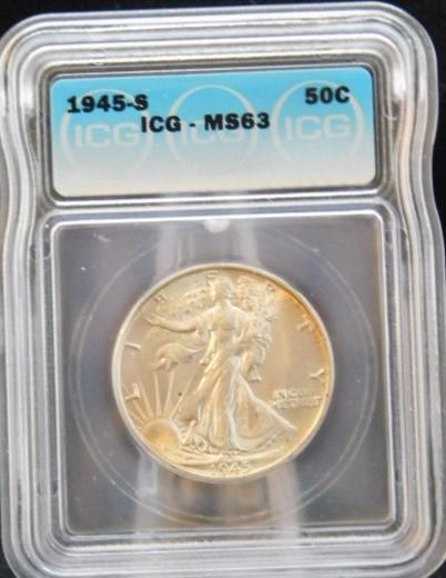 Walking Liberty 1945-S ICG MS63  Silver Half Dollar US Mint