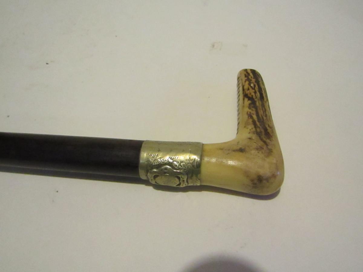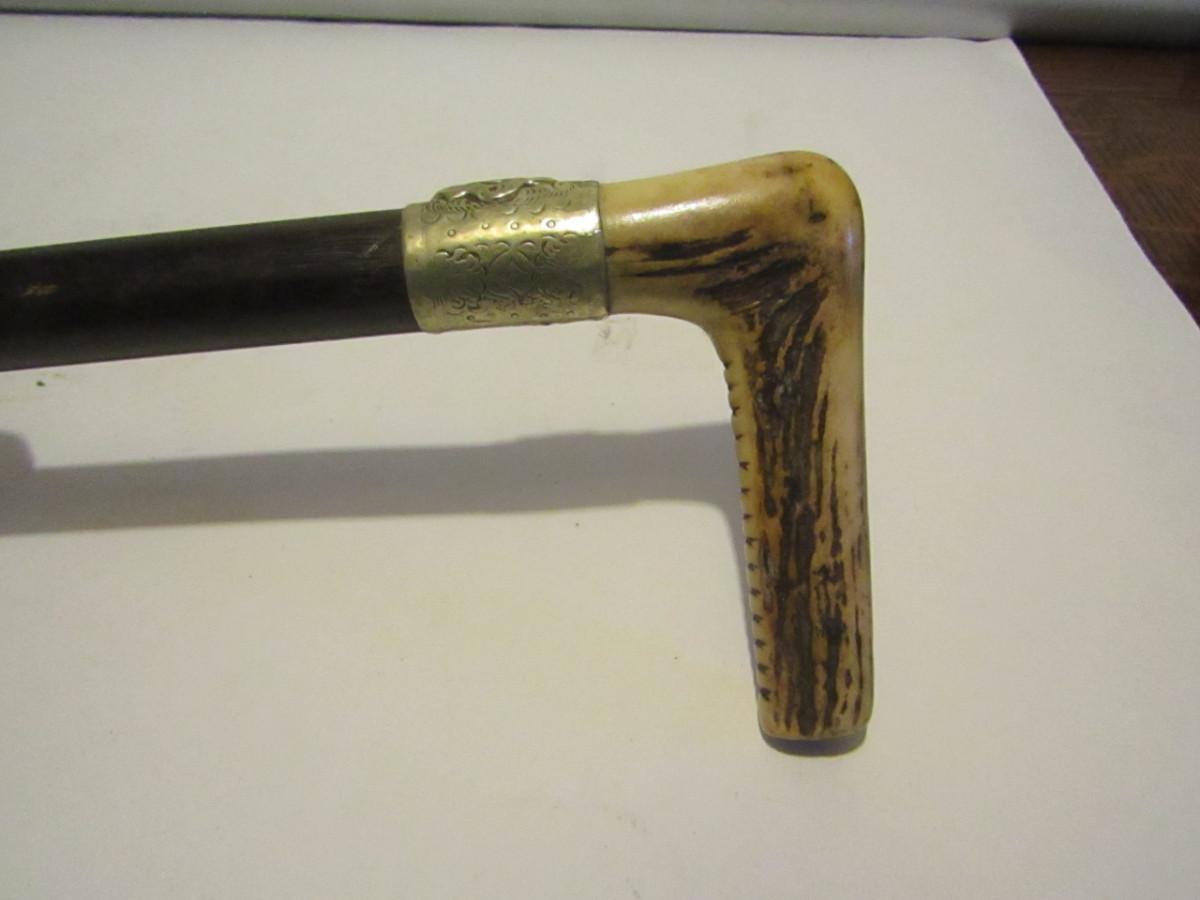 Walking Stick with Carved Bone Handle- Approx 35 1/2" Long