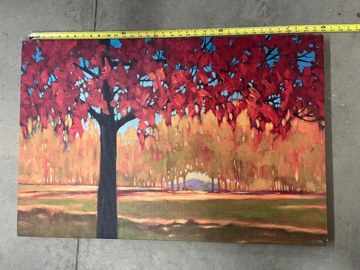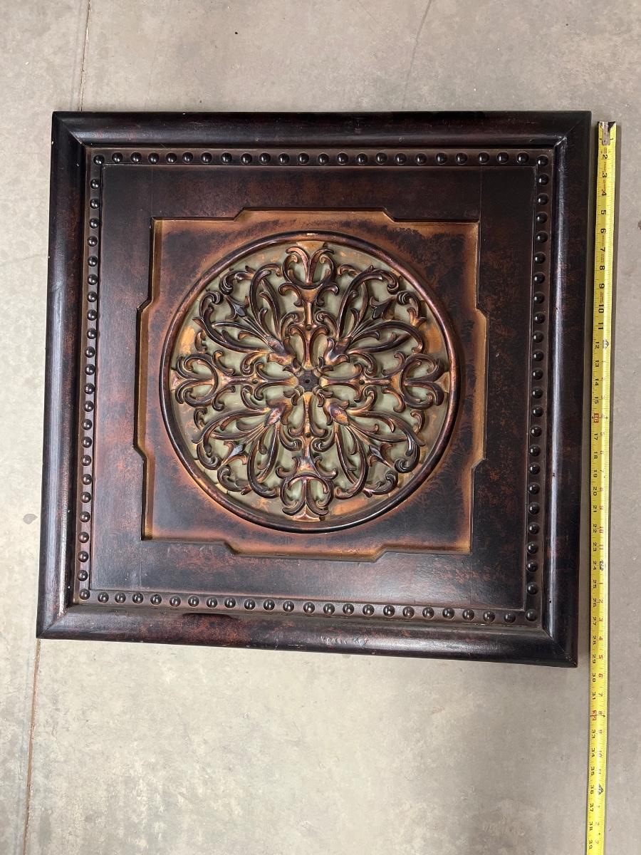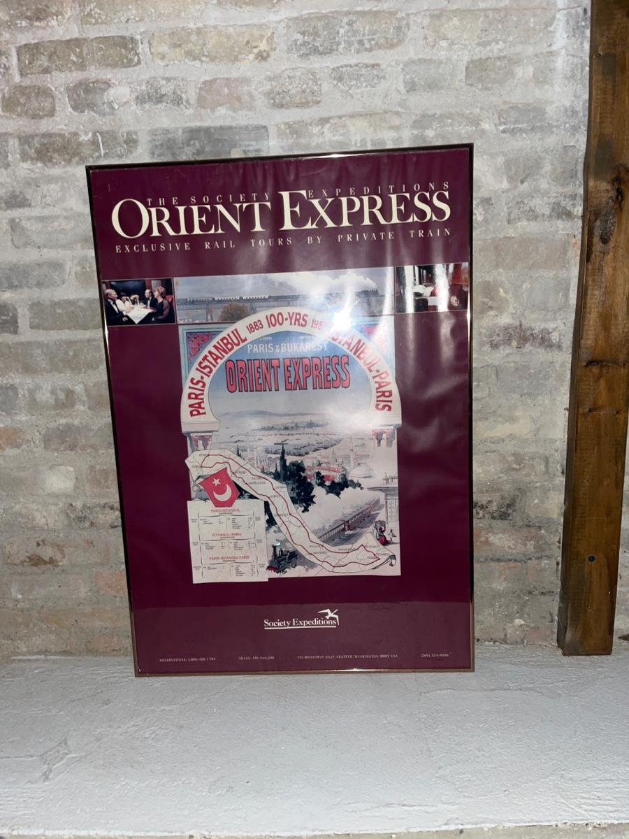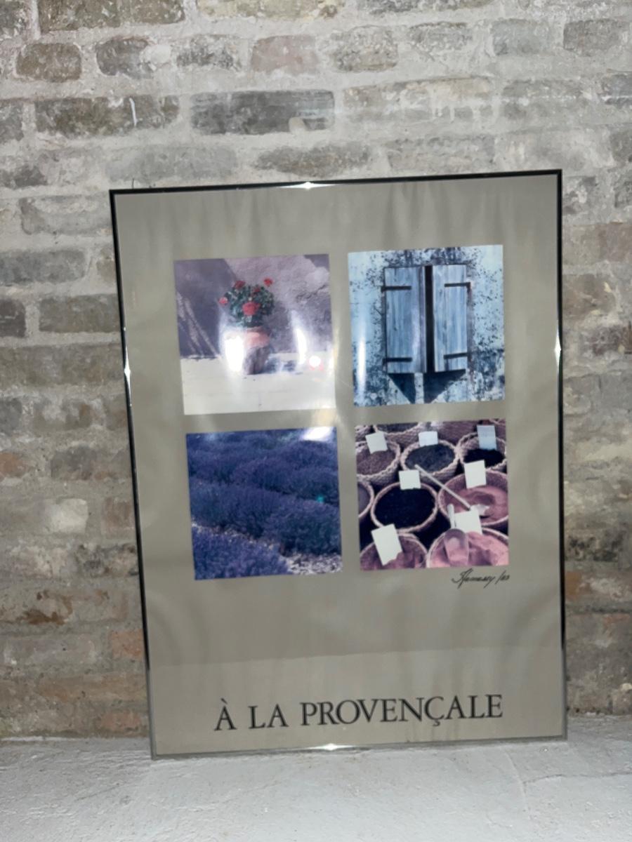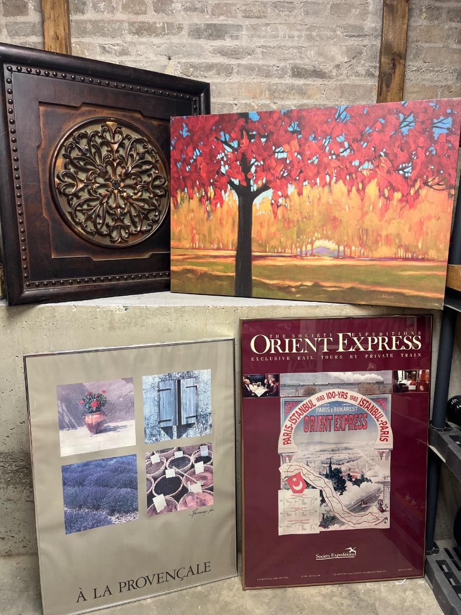 Medallion wall hanging is 29” square, canvas is 11 1/2 x 35 1/2, Orient Express framed poster is 24” x 34”, and À La Provençale poster is 24” x 32”