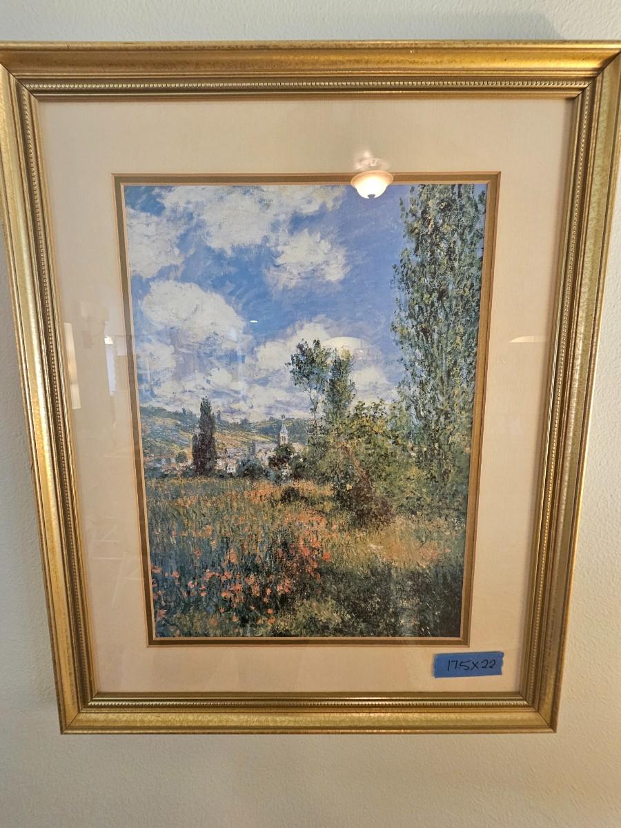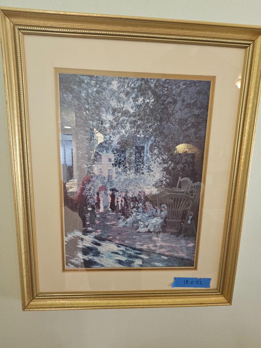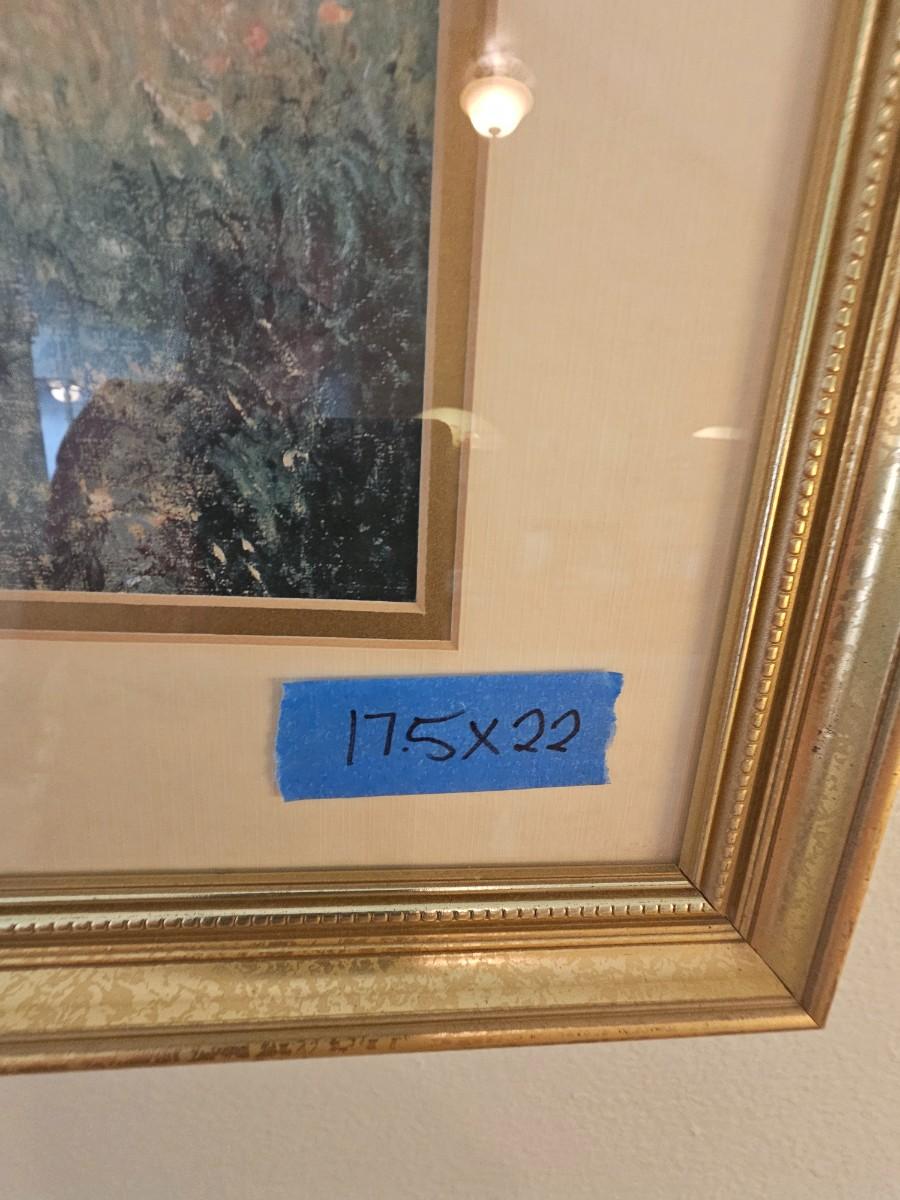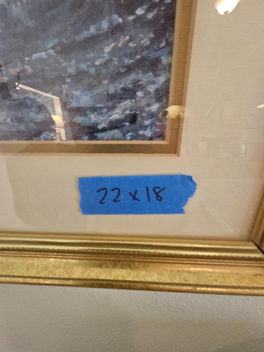 Scenic pictures, (2) 17.5x22", 22x18. gold frames, double matted with glass.