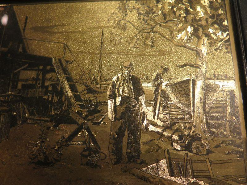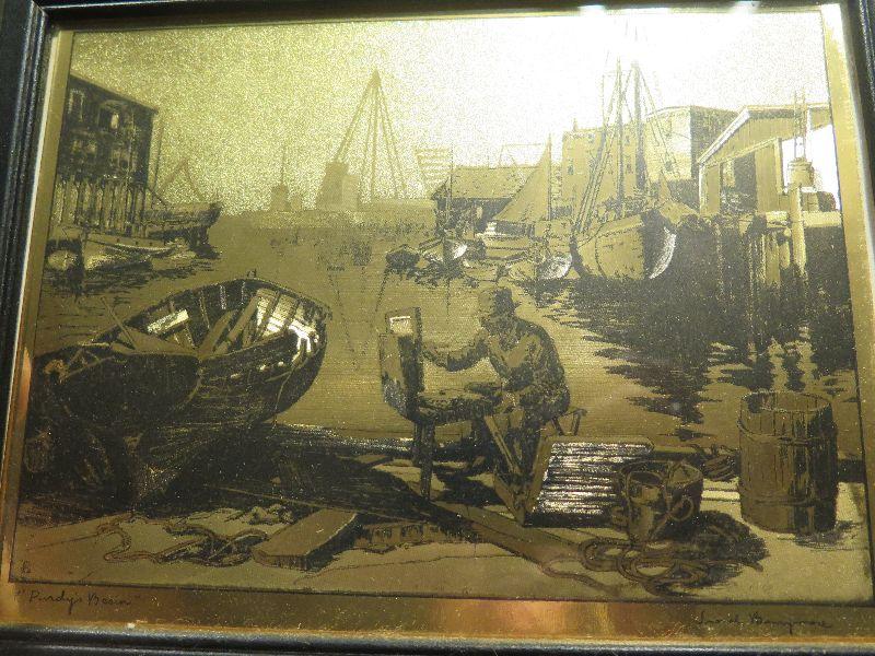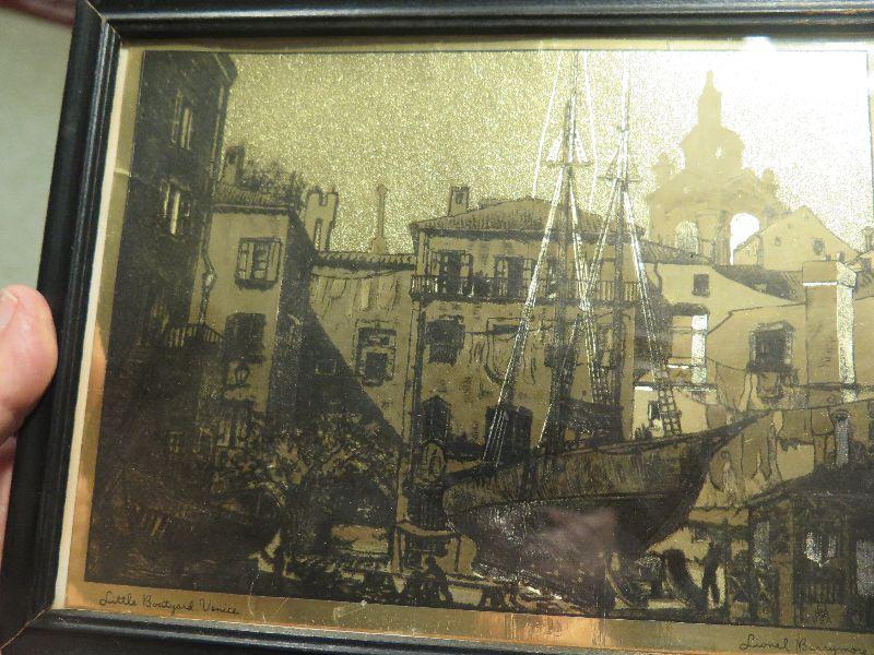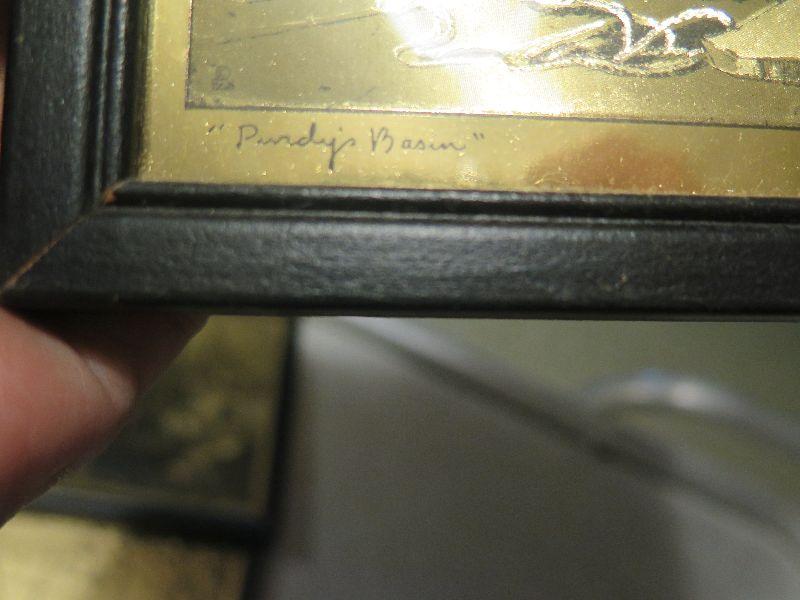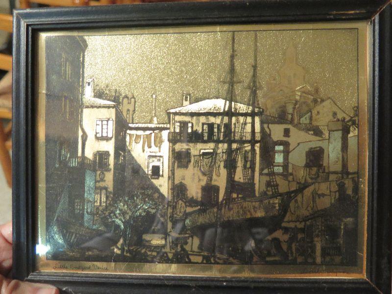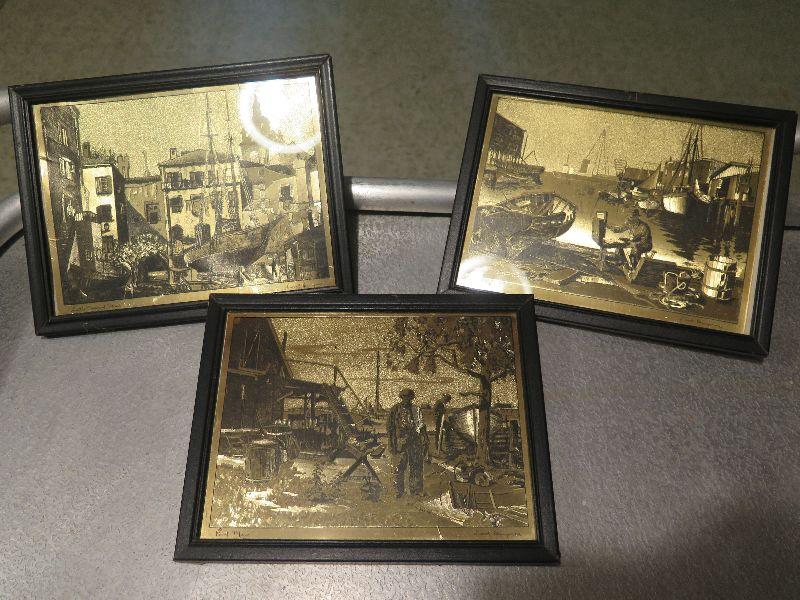 Three gold foil etched prints, signed. 7x9. Please review all photos and read Terms and Conditions before placing a bid. Pick up is Wednesday, November 20 from 4-7pm and Saturday, November 23 from 9am-2pm in Mantua, New Jersey. All sales are final. All sales are as is, where is. Please bring all boxes, tools, and muscle needed to remove your items. Any photo props are not included. All measurements are approximate. Items come from dog-friendly home.