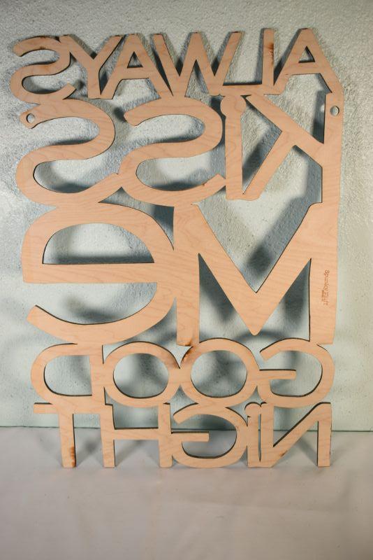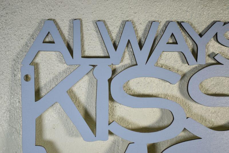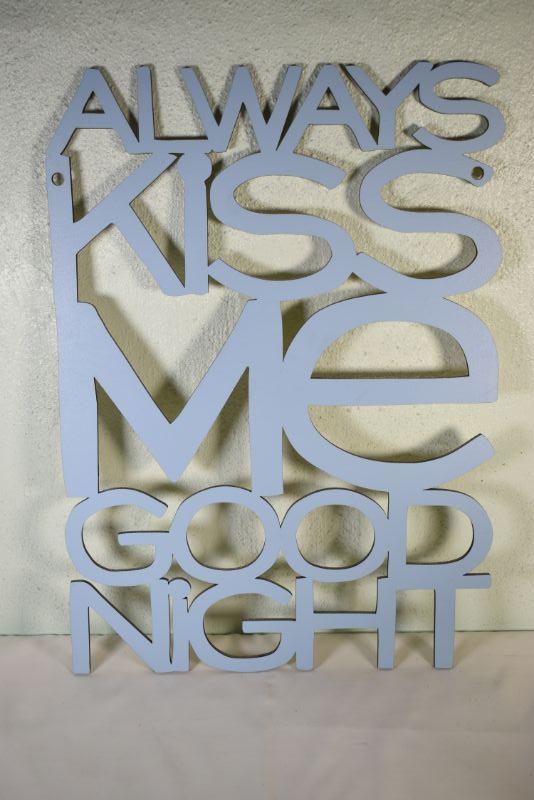 Always Kiss Me Good Night, laser cut wood wall hanging. Hang over your bed....23x18.