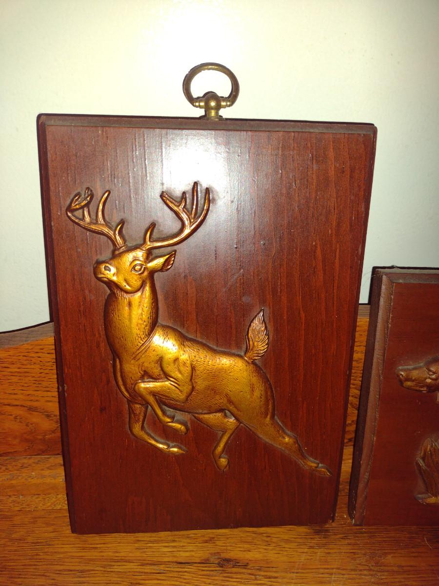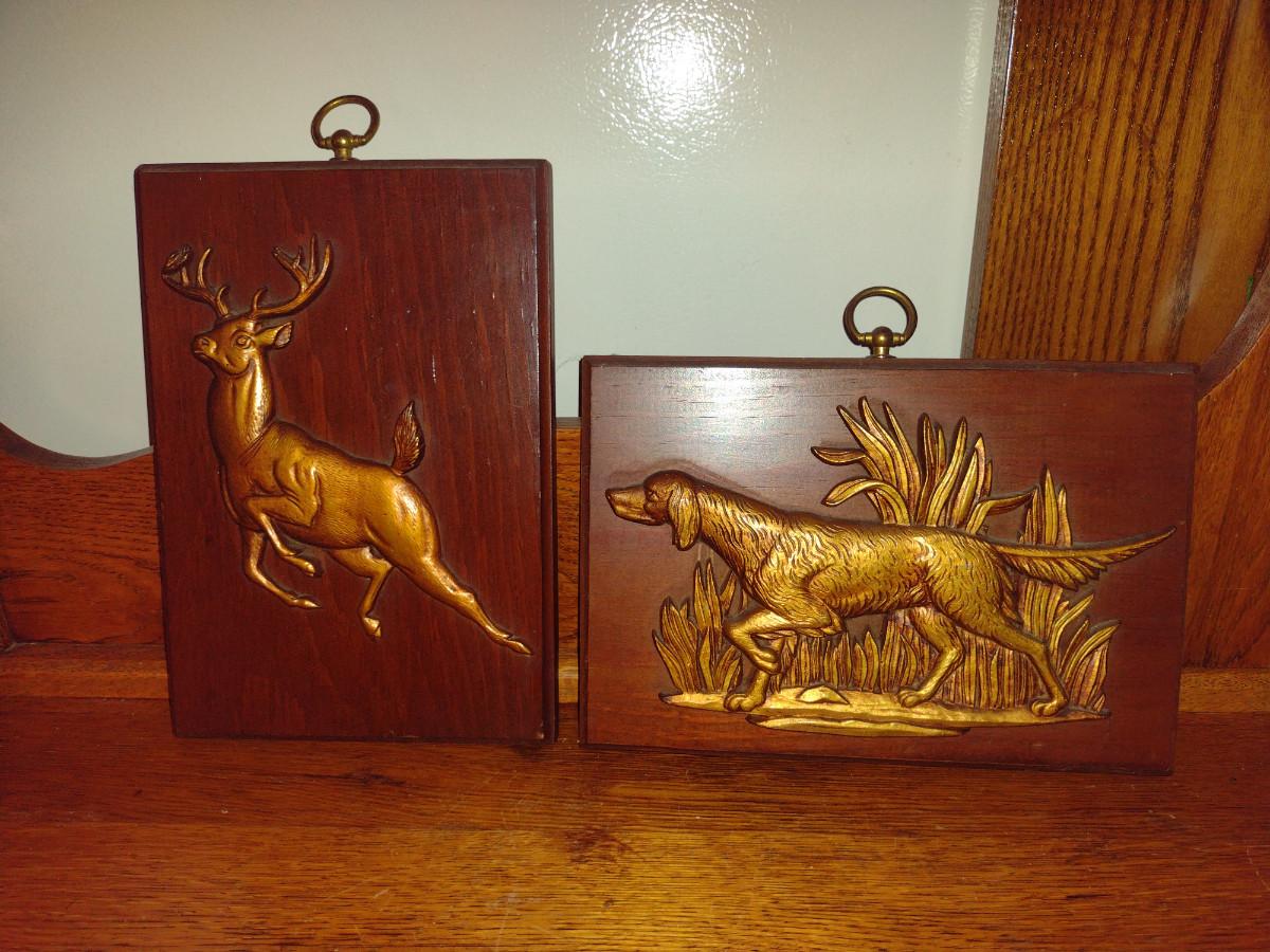 Wall Art- Brass on Wood- Deer and Hunting Dog Designs- Approx 7" x 10"