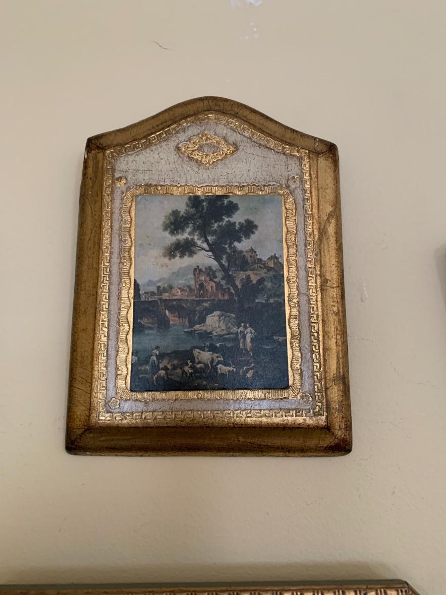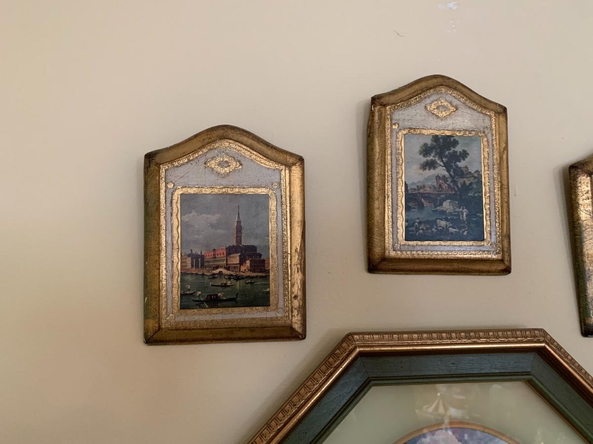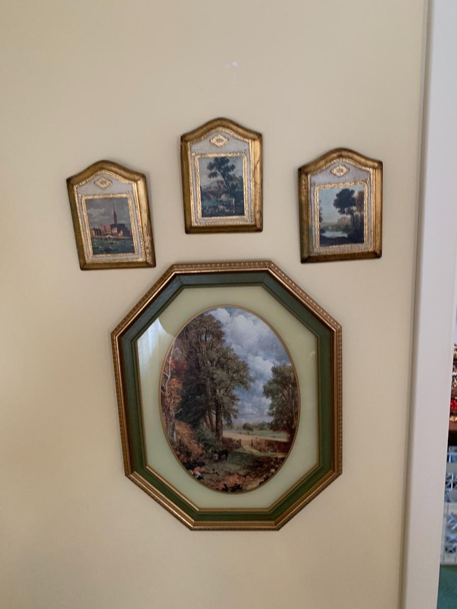Group of 3 gild wood wall art with Octagon framed pastoral scene. Sold as as set