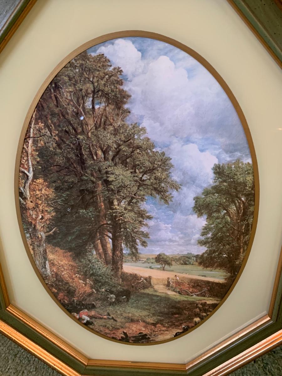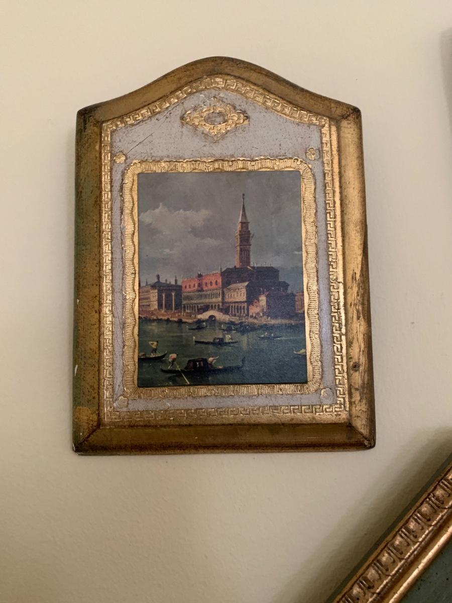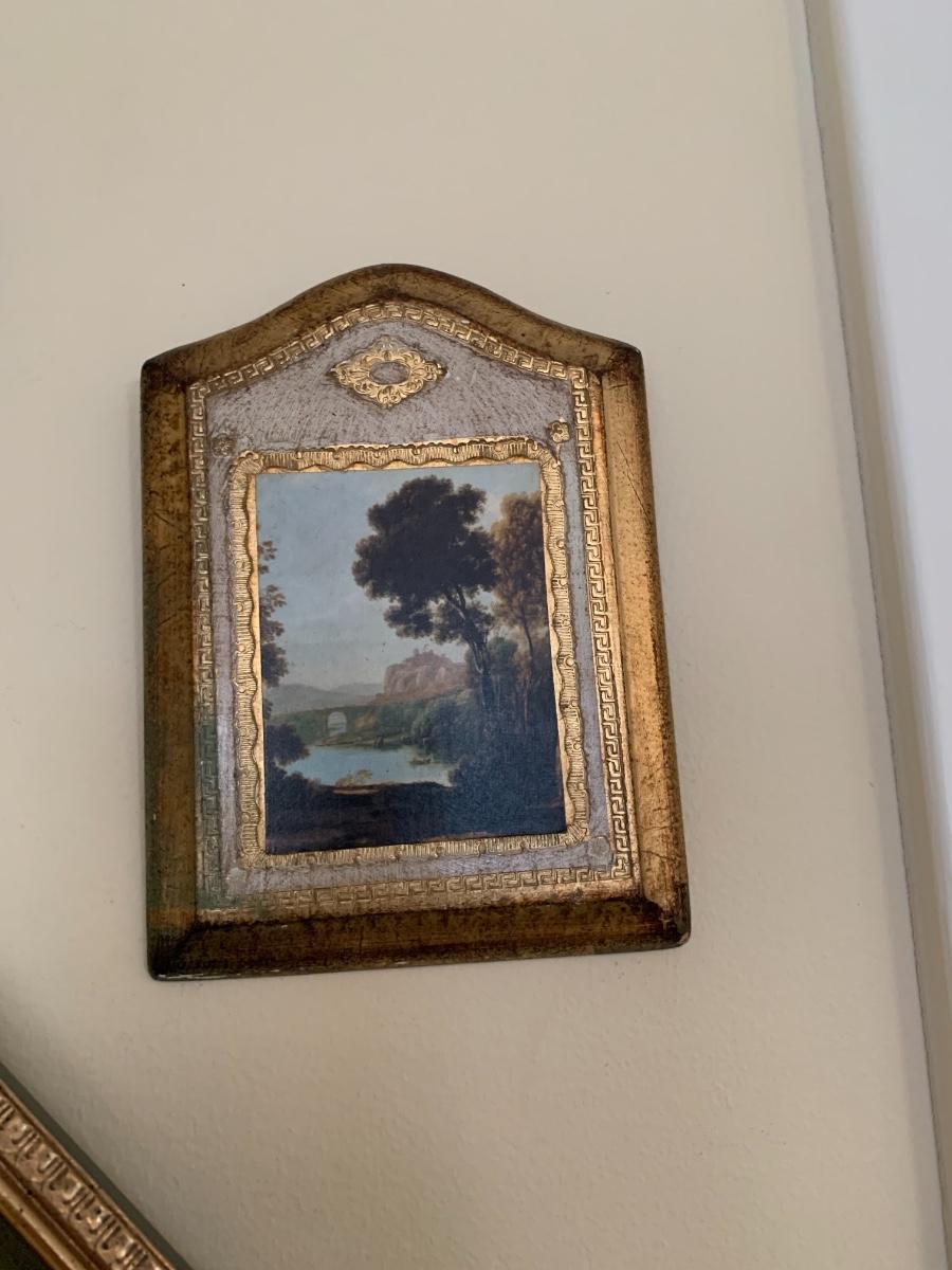Group of 3 gild wood wall art with Octagon framed pastoral scene. Sold as as set