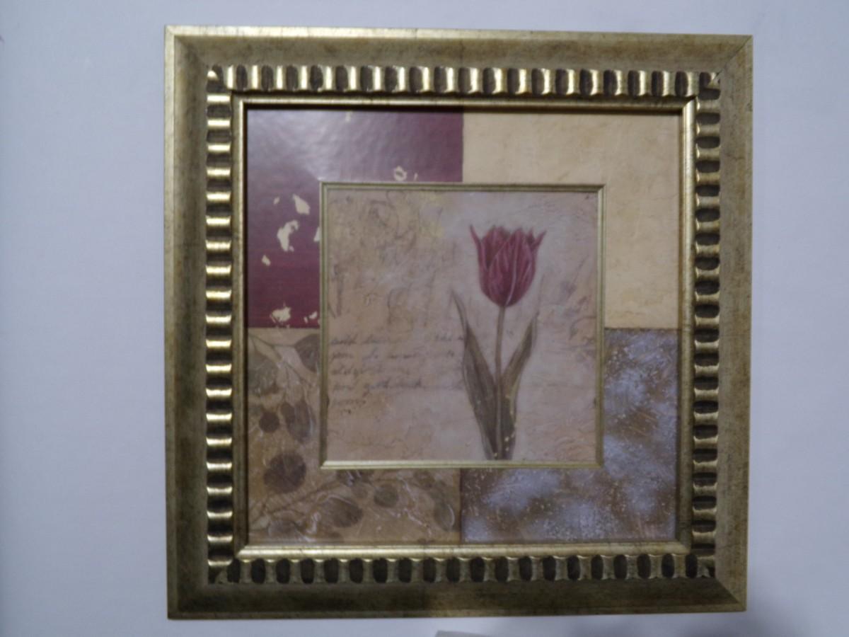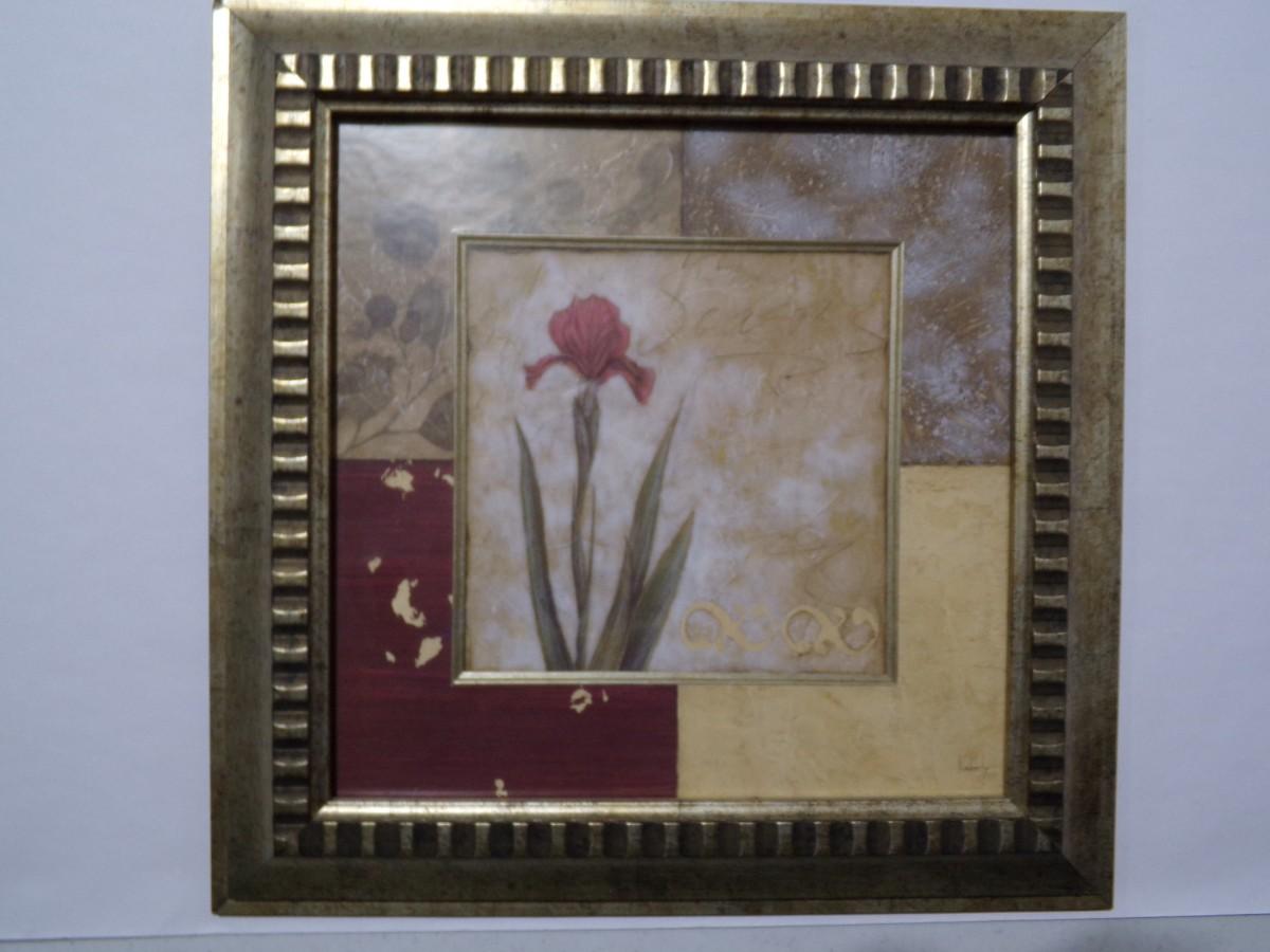 Wall Art pair. Tulip and Iris. About 15-1/2" square each including frame.