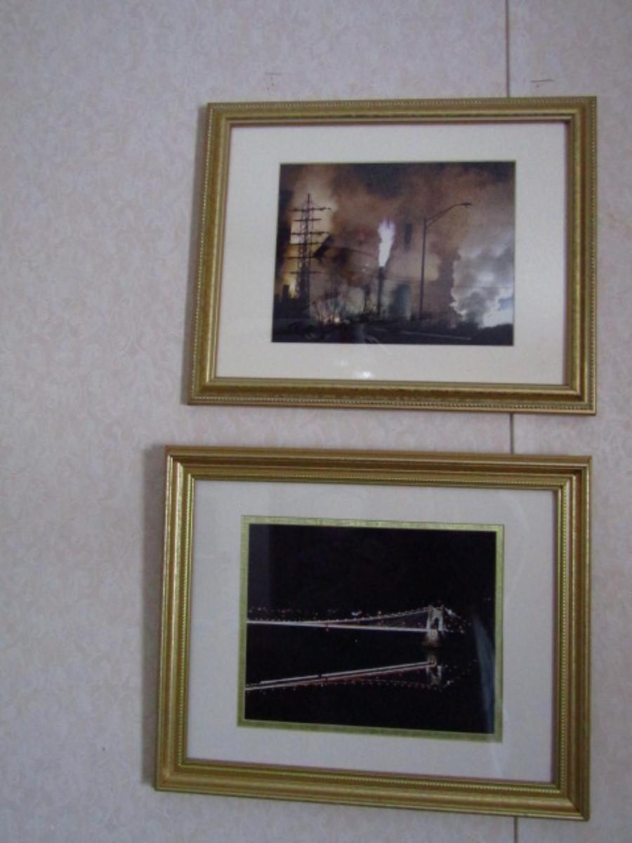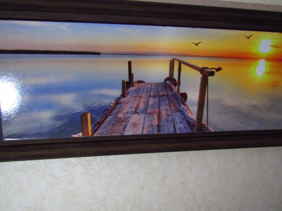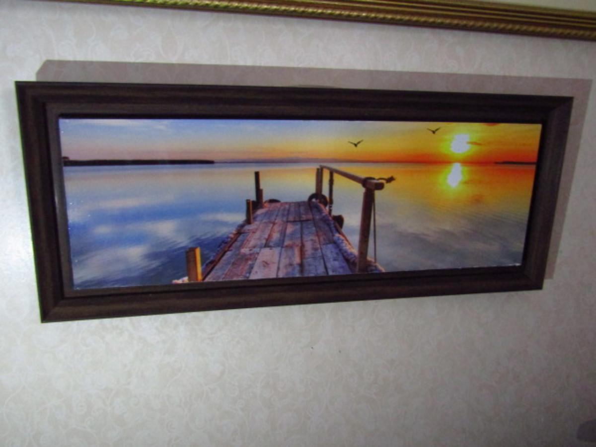 Wall Art- Three Different Pieces- Lighted Bridge, Wooden Dock Over Water, and Burning Pipeline. Please see all pictures.