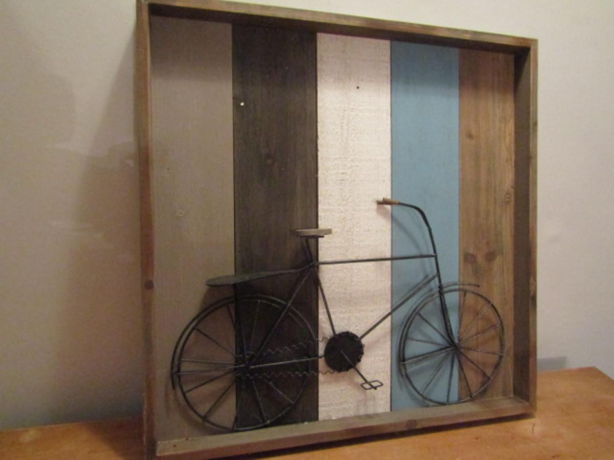 Wall Art- Wood and Metal- Bicycle Theme- Approx 19 1/2" x 20"
