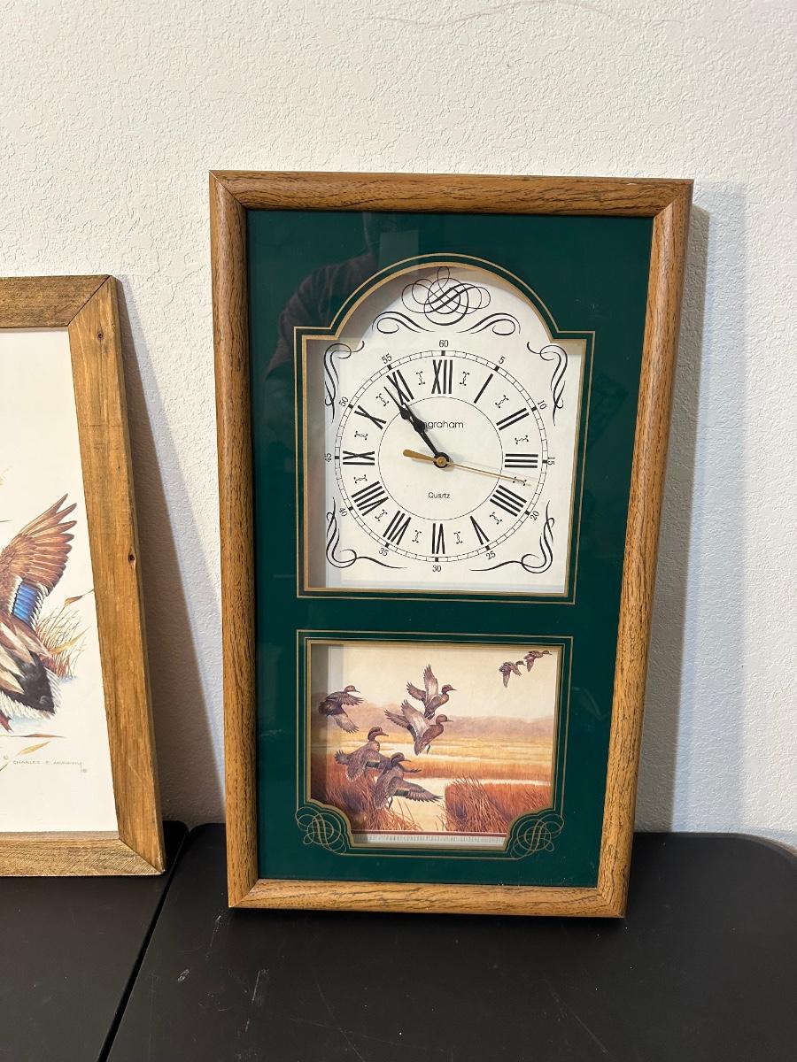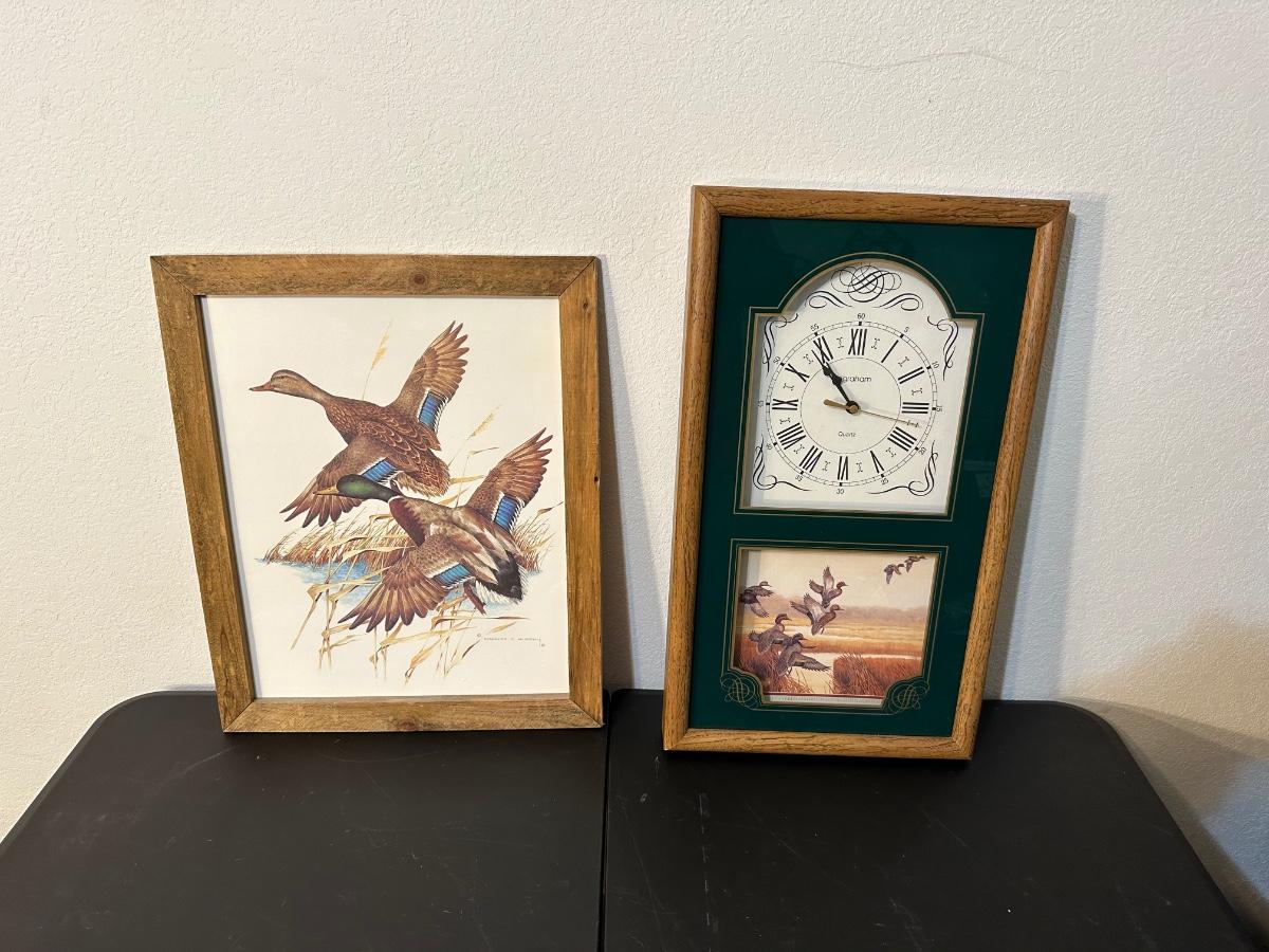 WALL CLOCK AND FRAMED PICTURE WITH A DUCK THEME