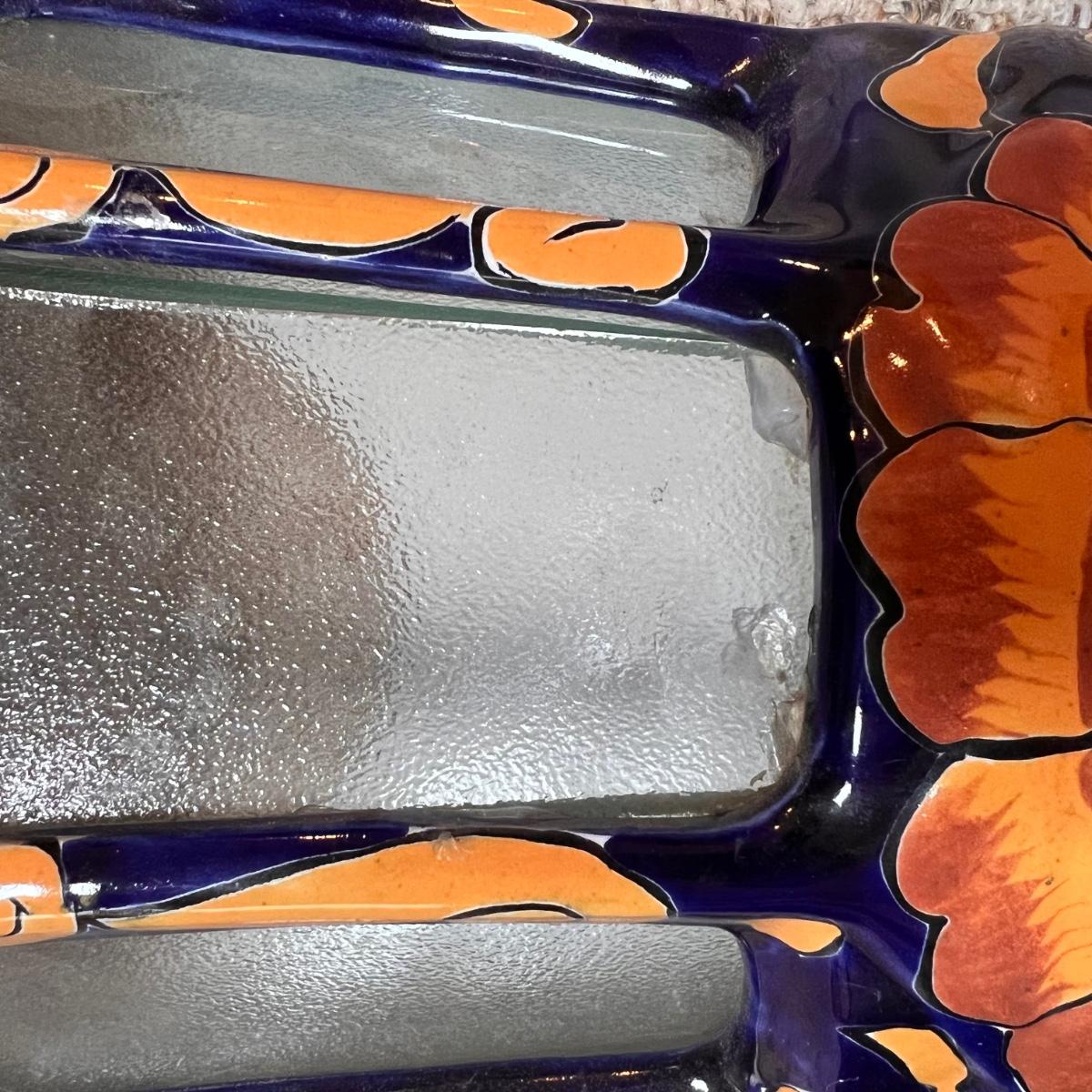Large wall decor. Glass windows. 1 window looks like it’s been glued back into position. As is