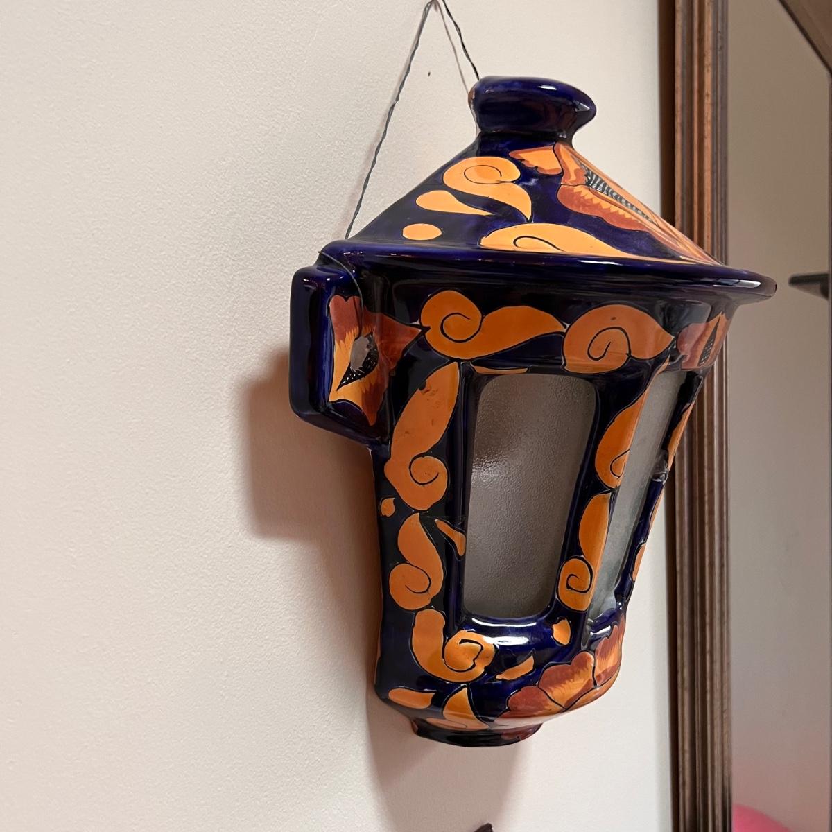 Large Painted Ceramic Wall Sconce