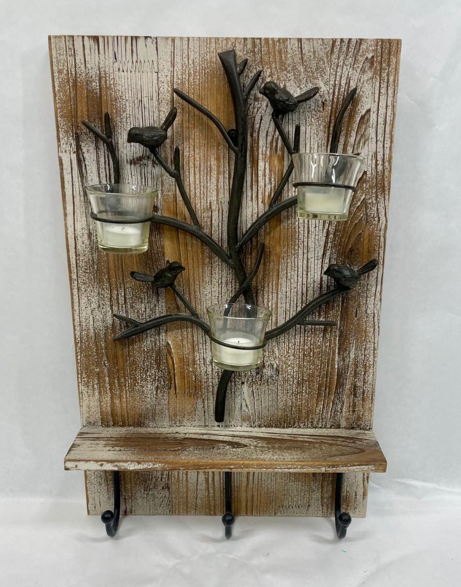 Wall Decor with Votive Candles, Shelf and Coathooks