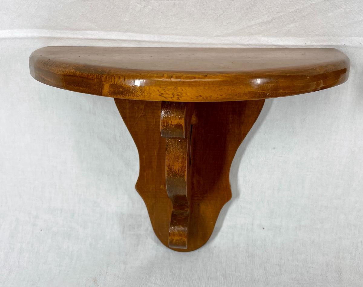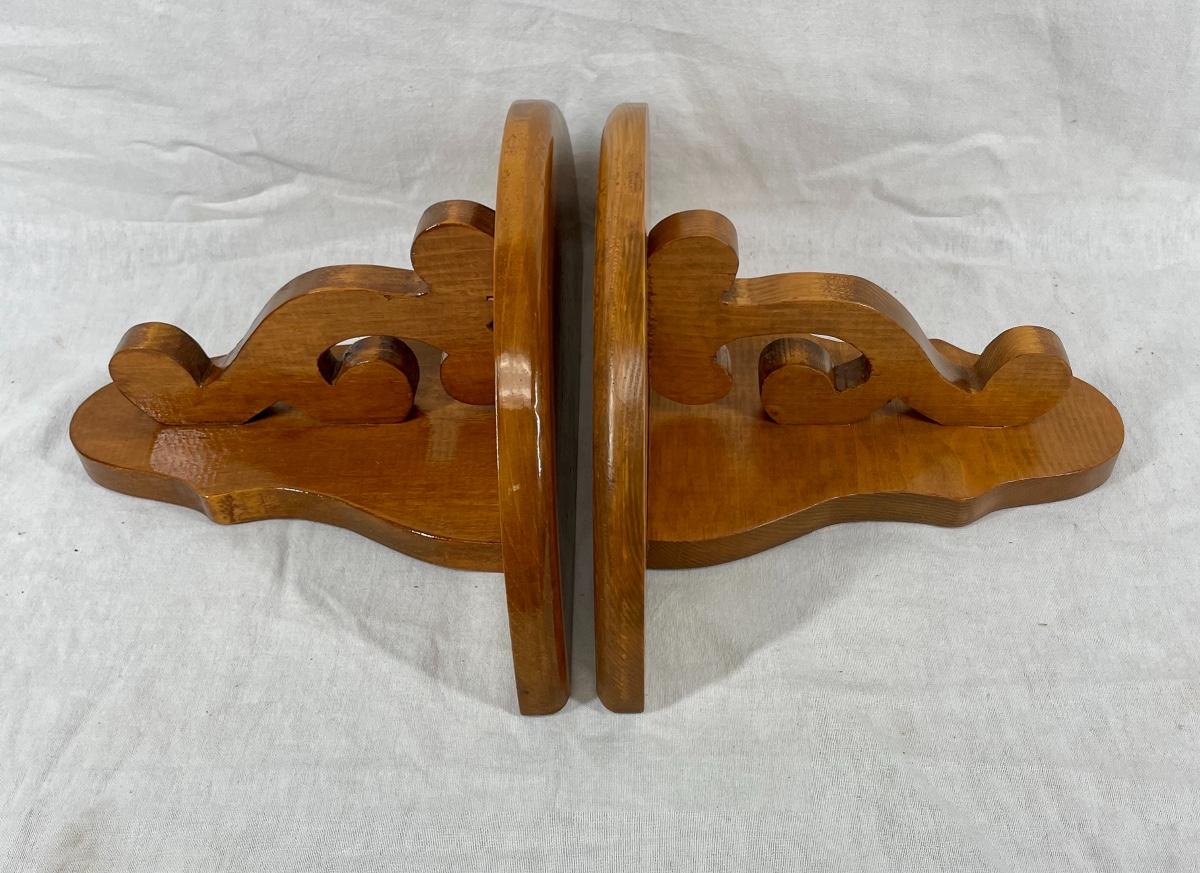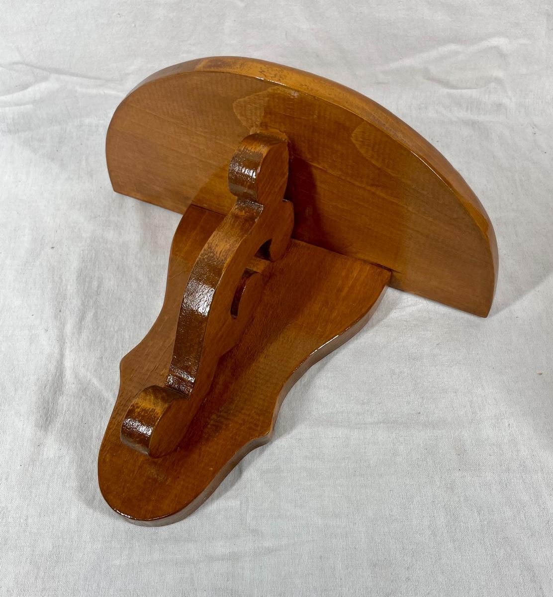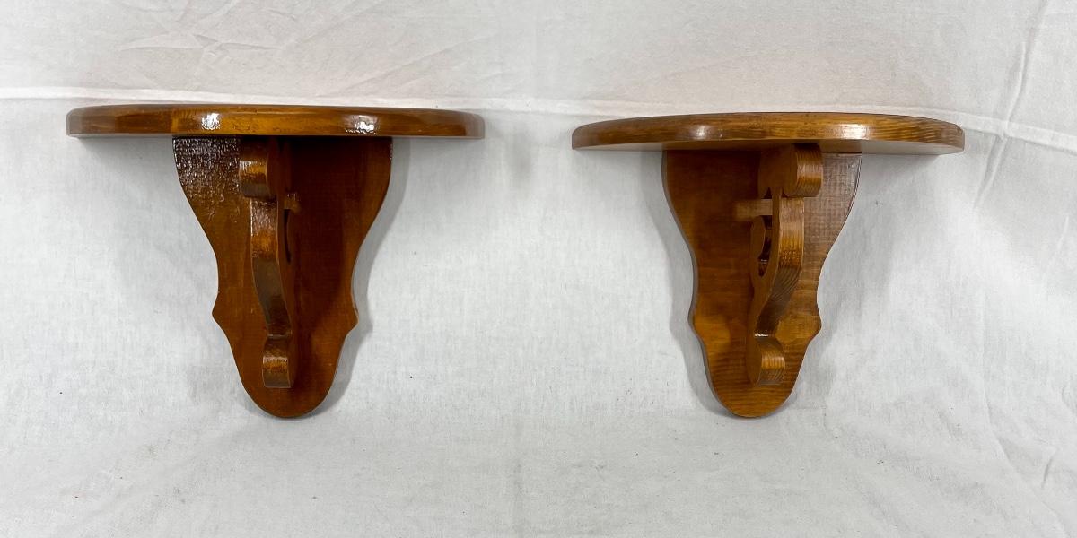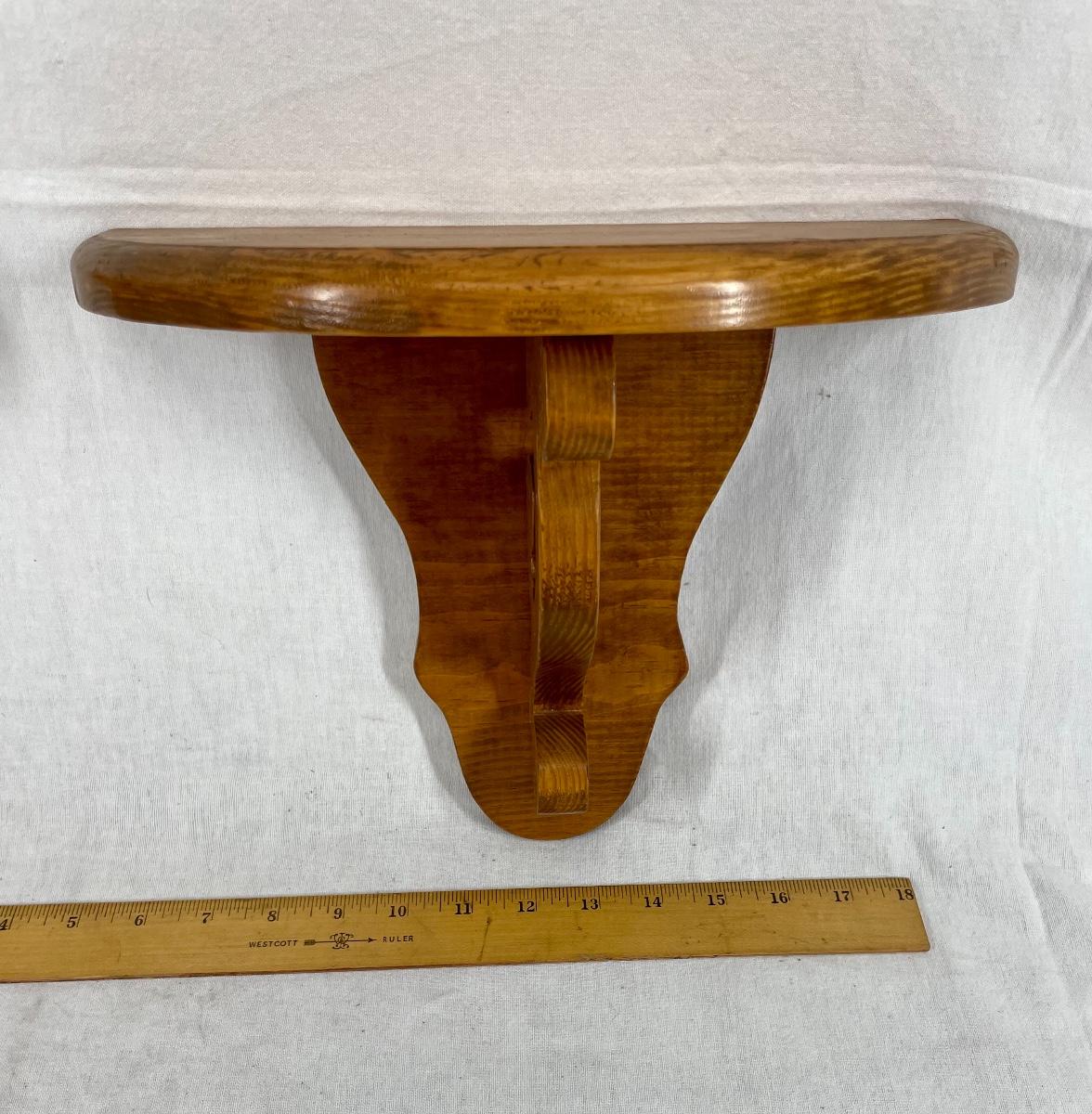 Wall display shelves. Wood finish can be painted. About 12” wide at back.