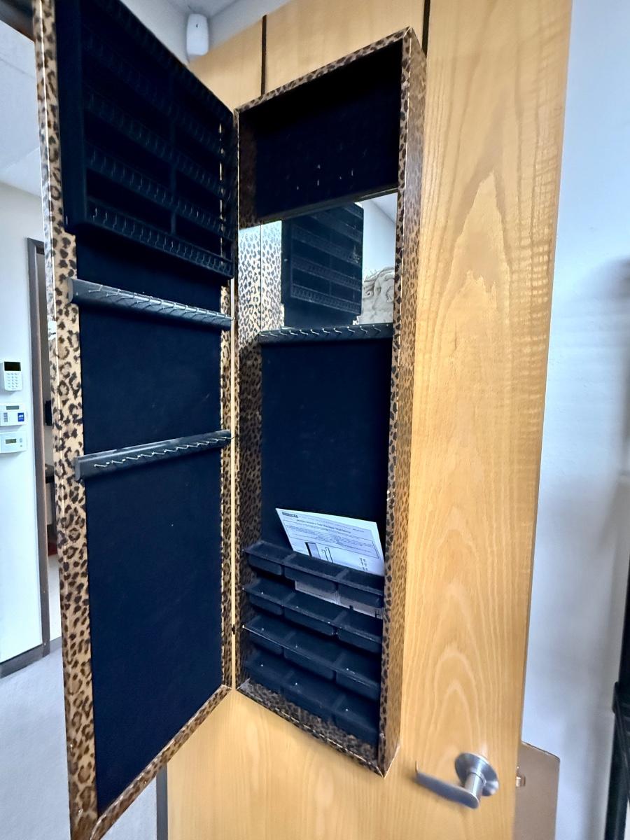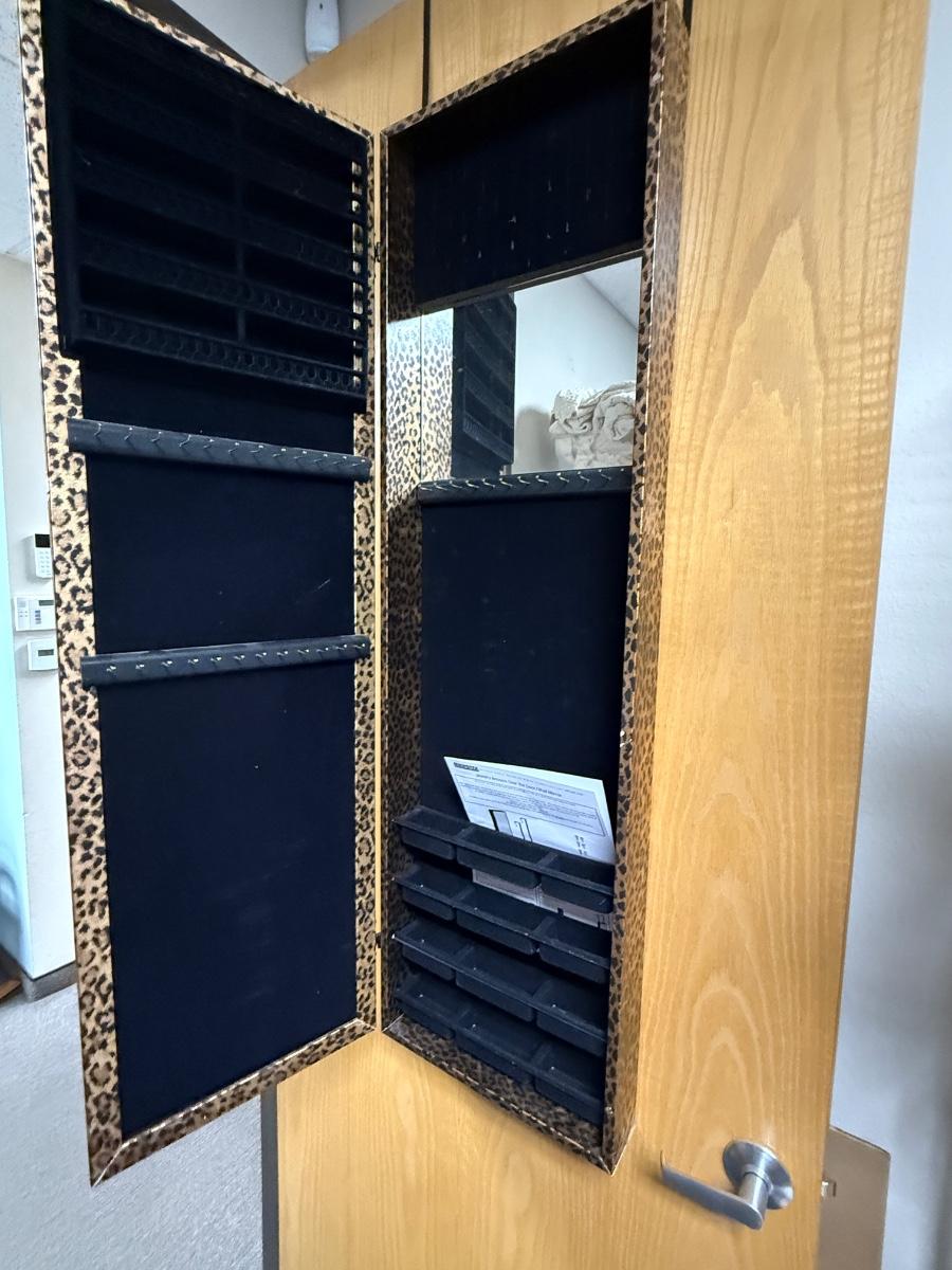 Wall Door Mounted Mirrored Jewelry Cabinet Standing Vanity Hanging Organizer Leopard Print