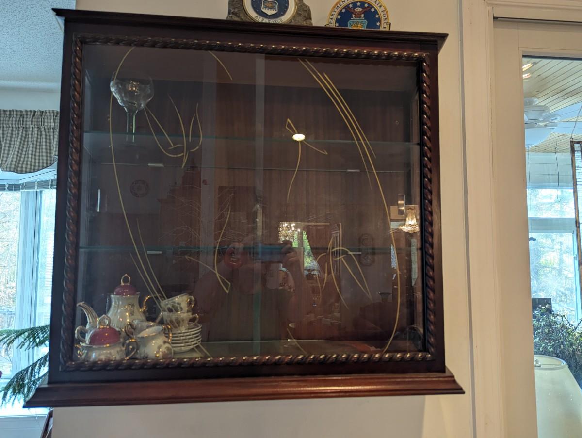 Wall Hanging Display Cabinet With Glass Sliding Doors & Glass Shelves