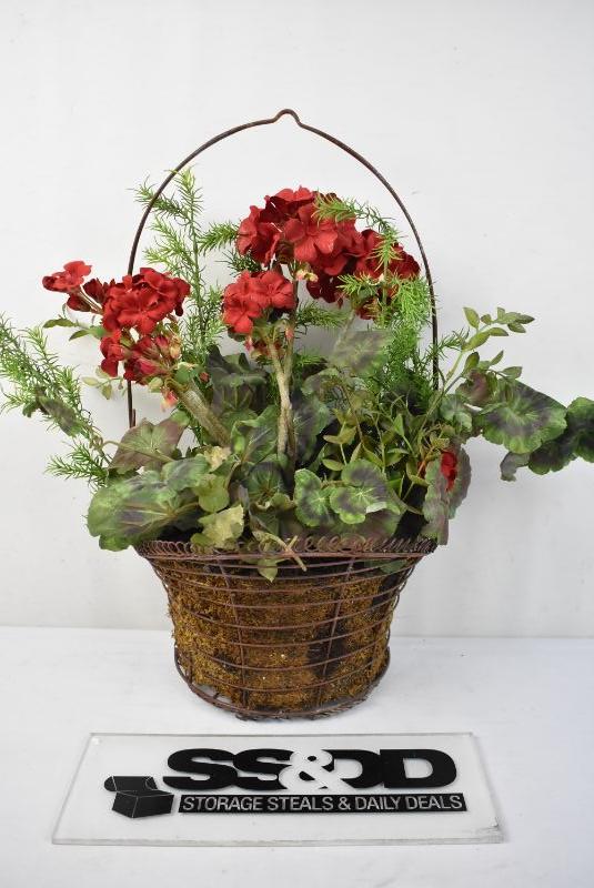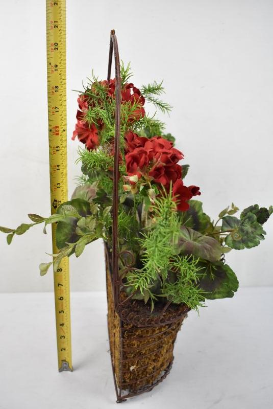 Wall Hanging Floral Arrangement. Metal Base, Red Flowers