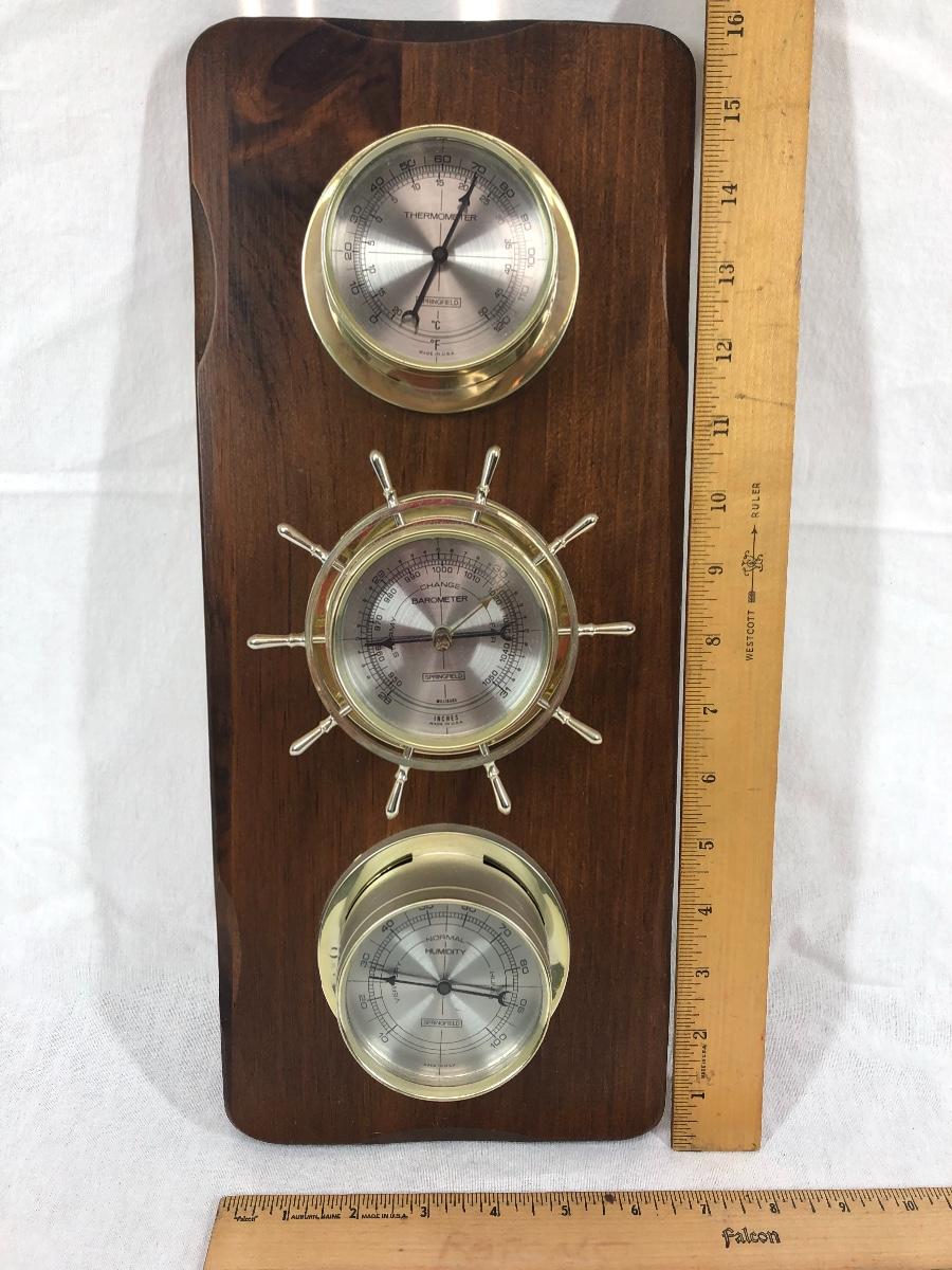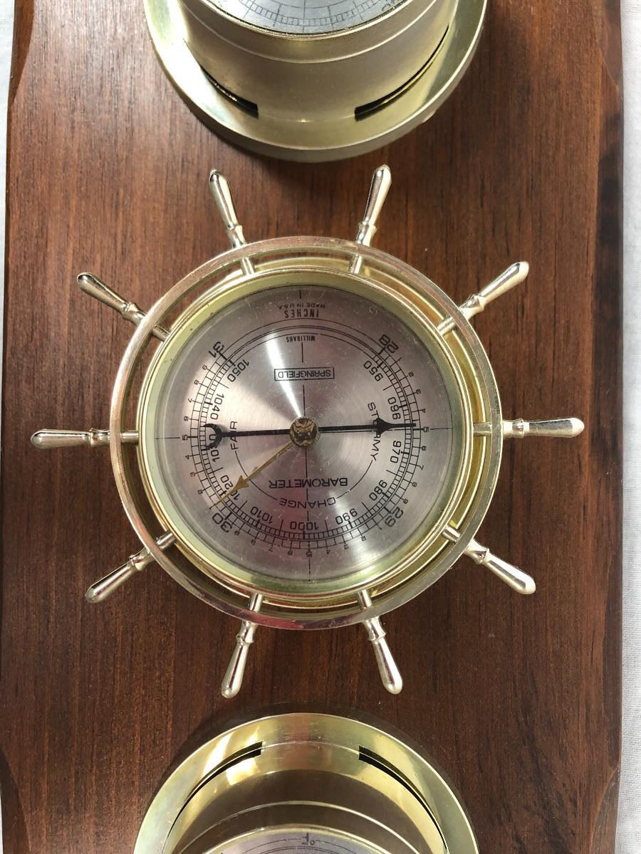 Wall hanging weather instruments from Springfield. Good vintage condition. About 16" size.