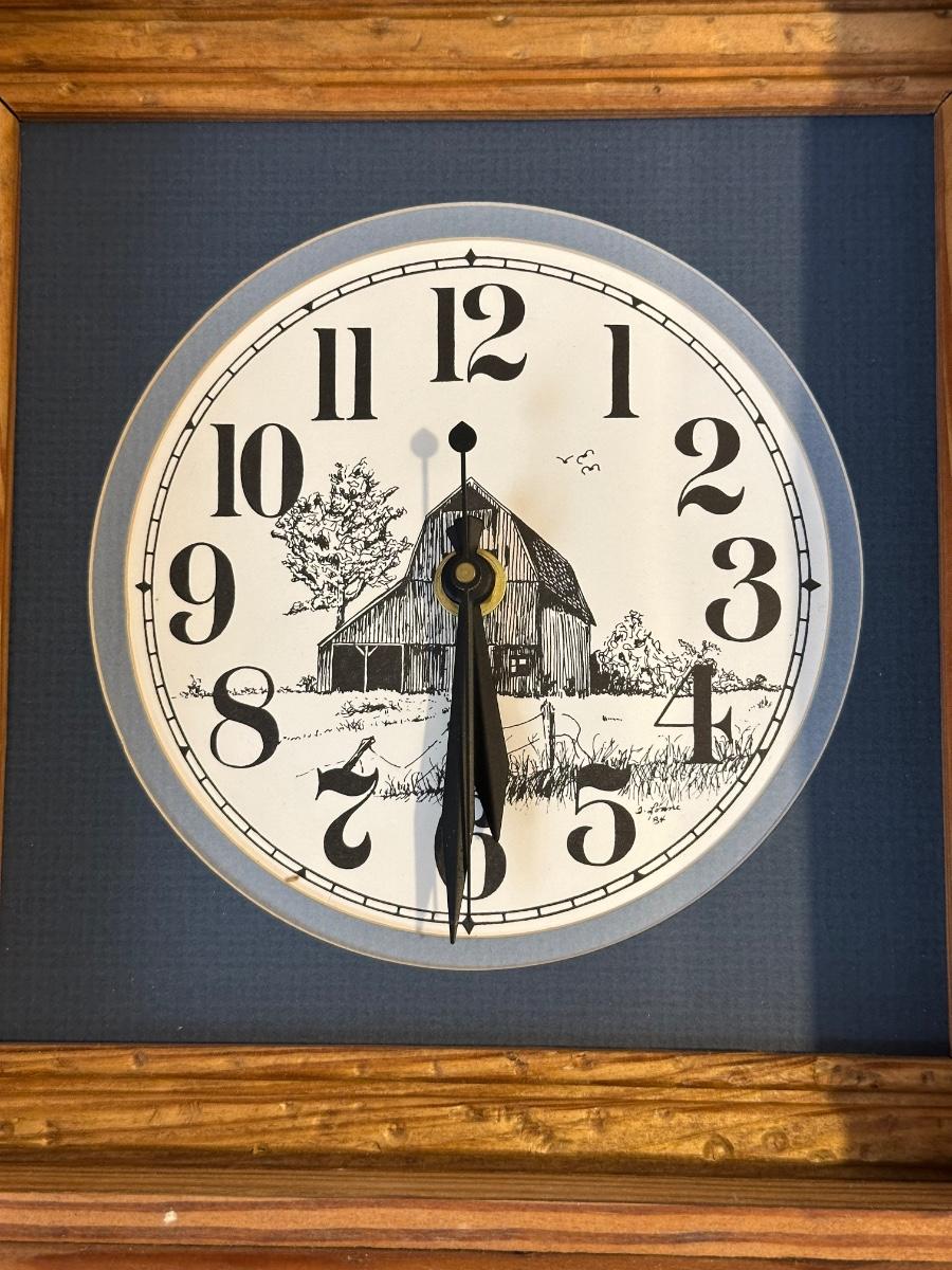 WALL HUNG BATTERY OPERATED CLOCK WITH BARN SCENE