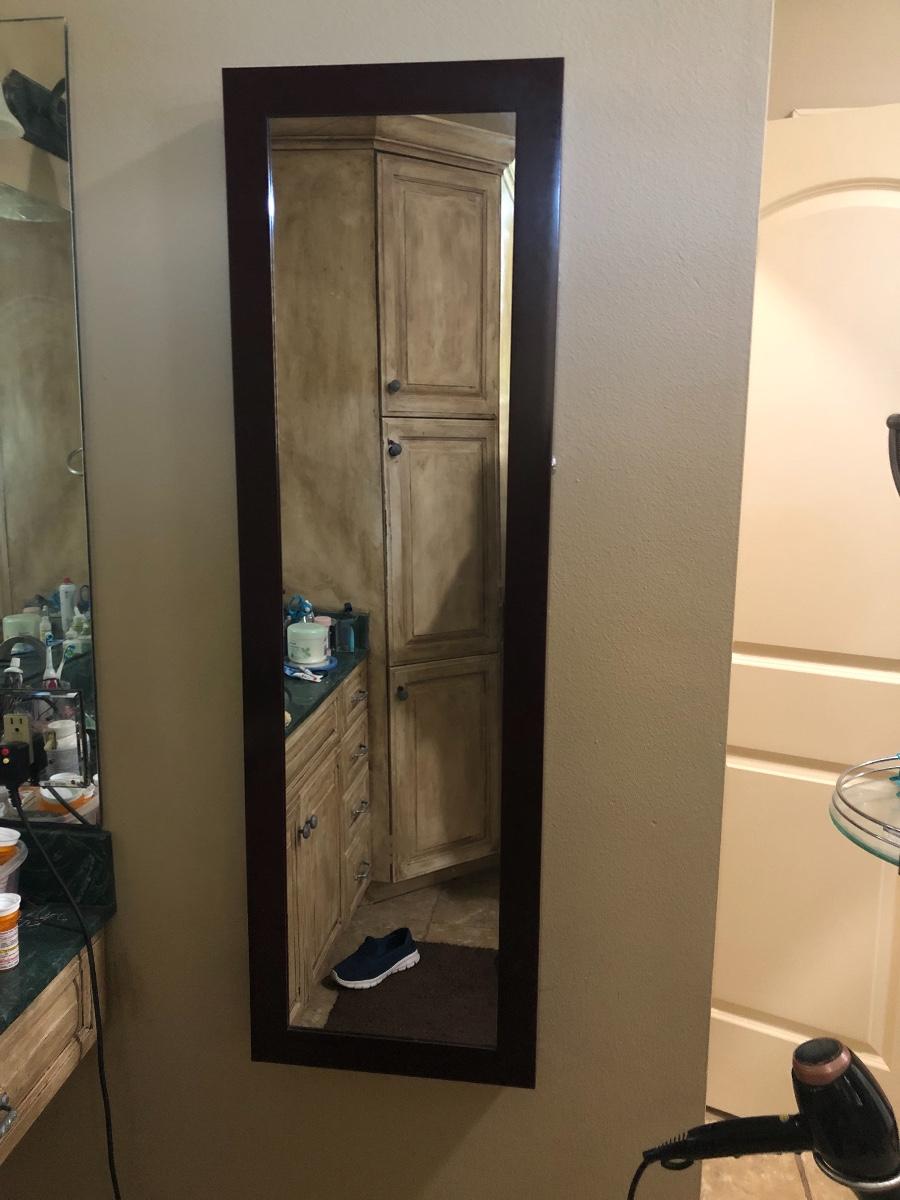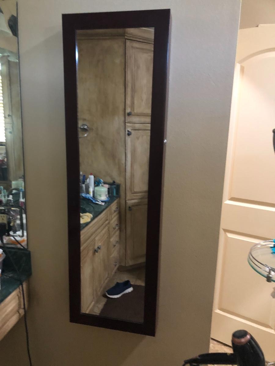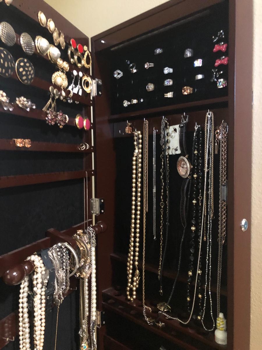 This is a great jewelry cabinet with storage for just about all your jewelry needs. Jewelry not included Measures 47 x 14.5 x 3