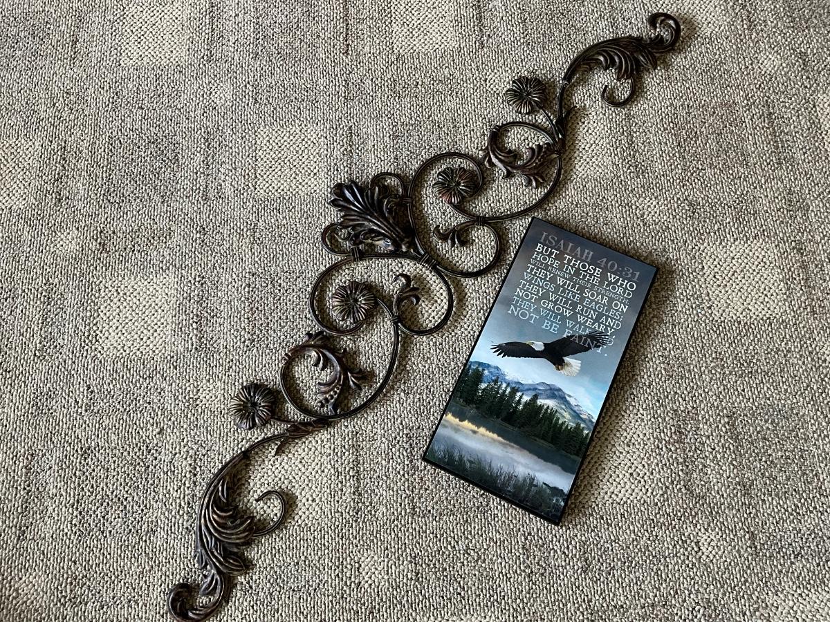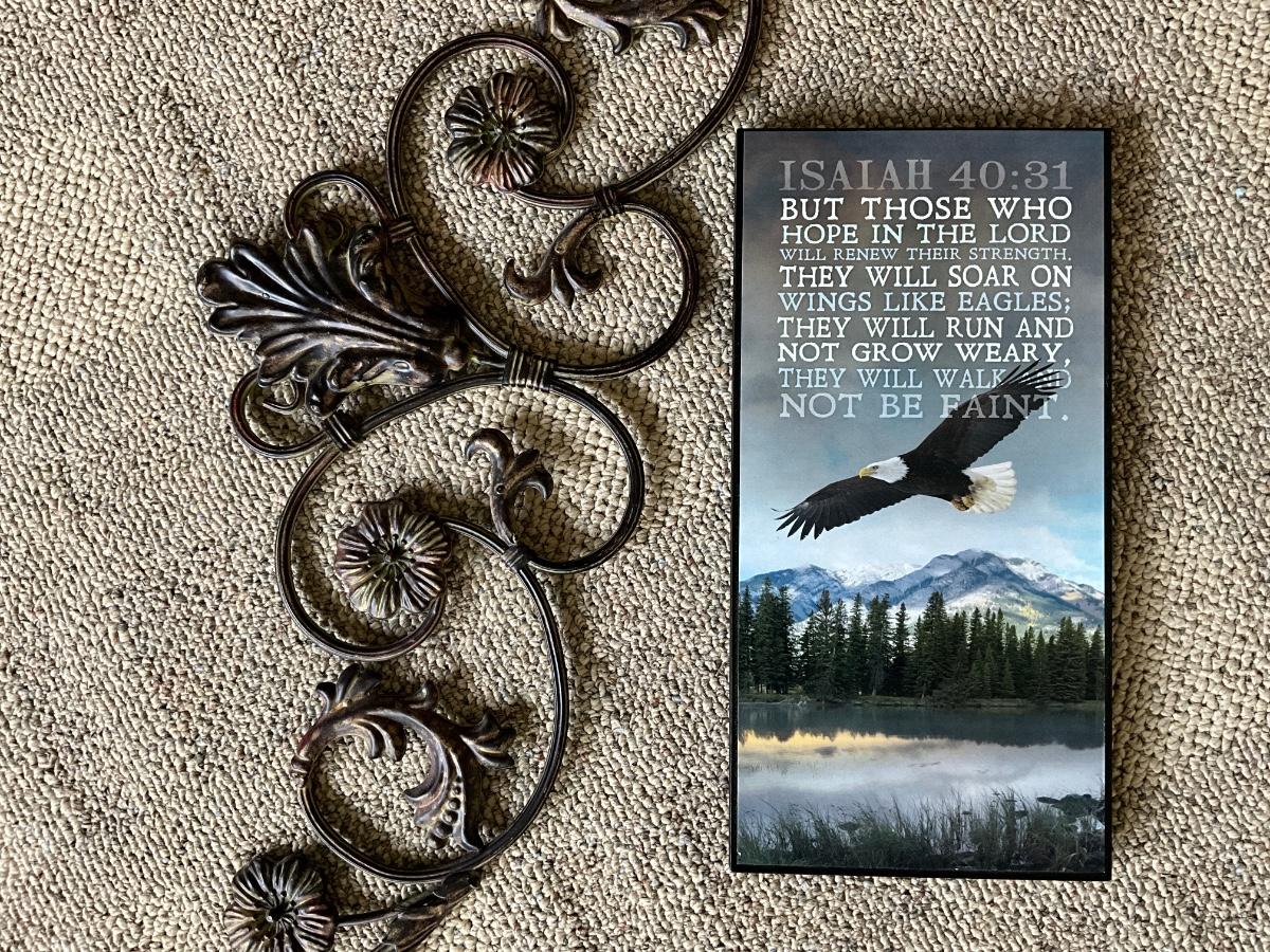 Wall metal decor with Isaiah 40:30 wooden art