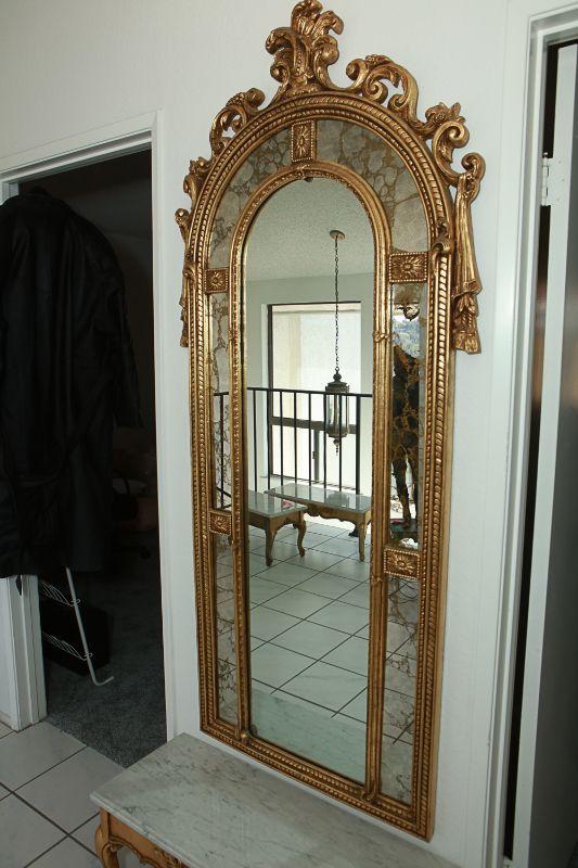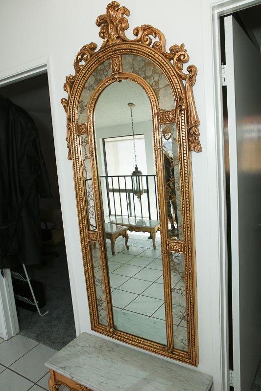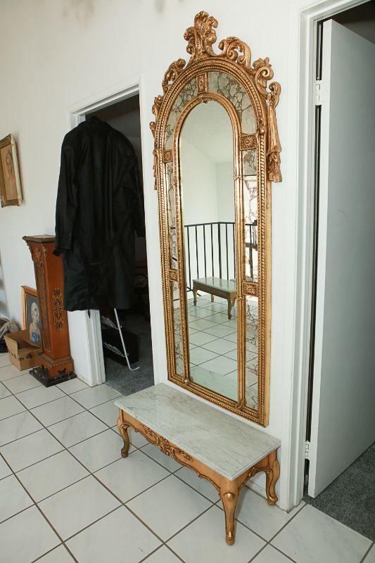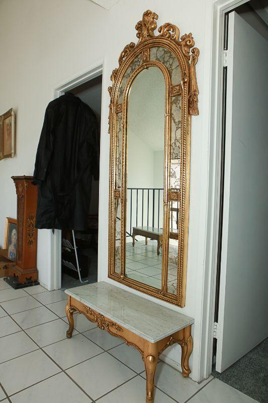 Gold Gilt Wall Mirror with Marble Top Bench YD#022-0041