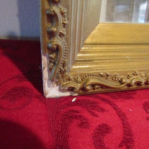 WALL MIRROR CORNER OF FRAME IS CHIPPED OFF