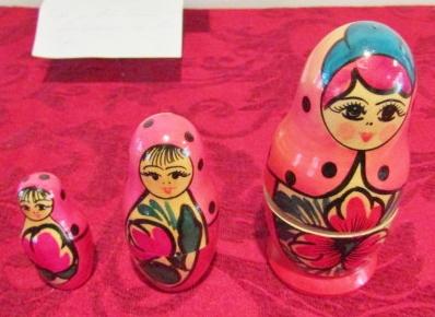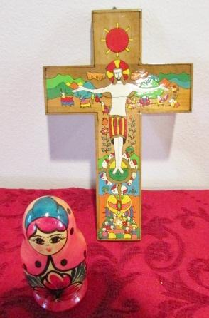 LOT 140  WALL MIRROR & CROSS.  NESTING DOLLS