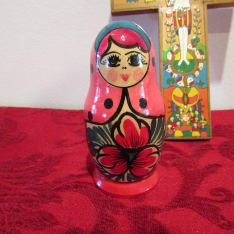 LOT 140 WALL MIRROR & CROSS. NESTING DOLLS