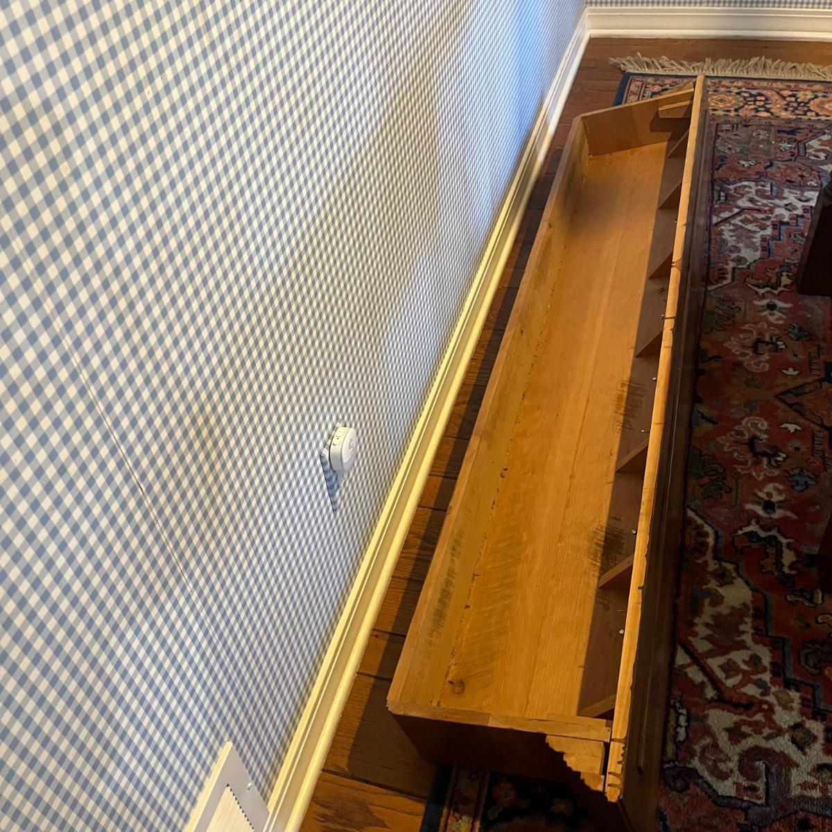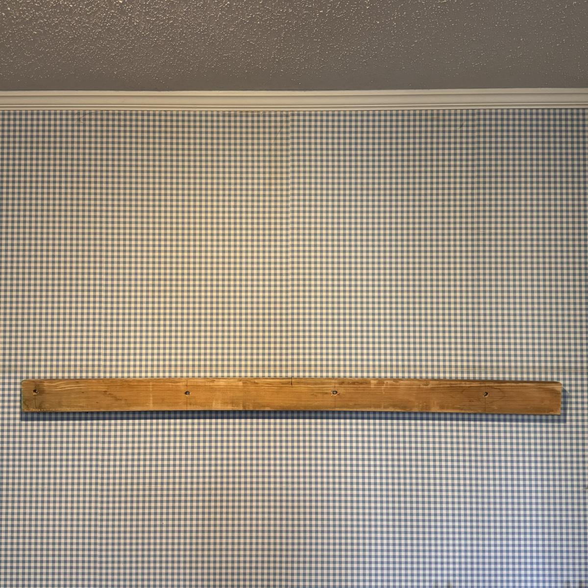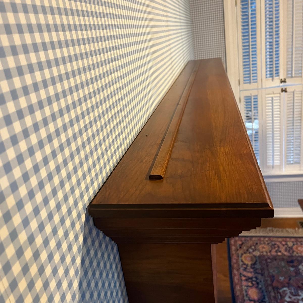 Lot includes a wooden wall mount mantel-style plate stand that measures 72” x 8” x 12.5”H. The 2” x 4” piece of wood used to mount is available to winning bidder but must be removed from wall with a flat head screwdriver.