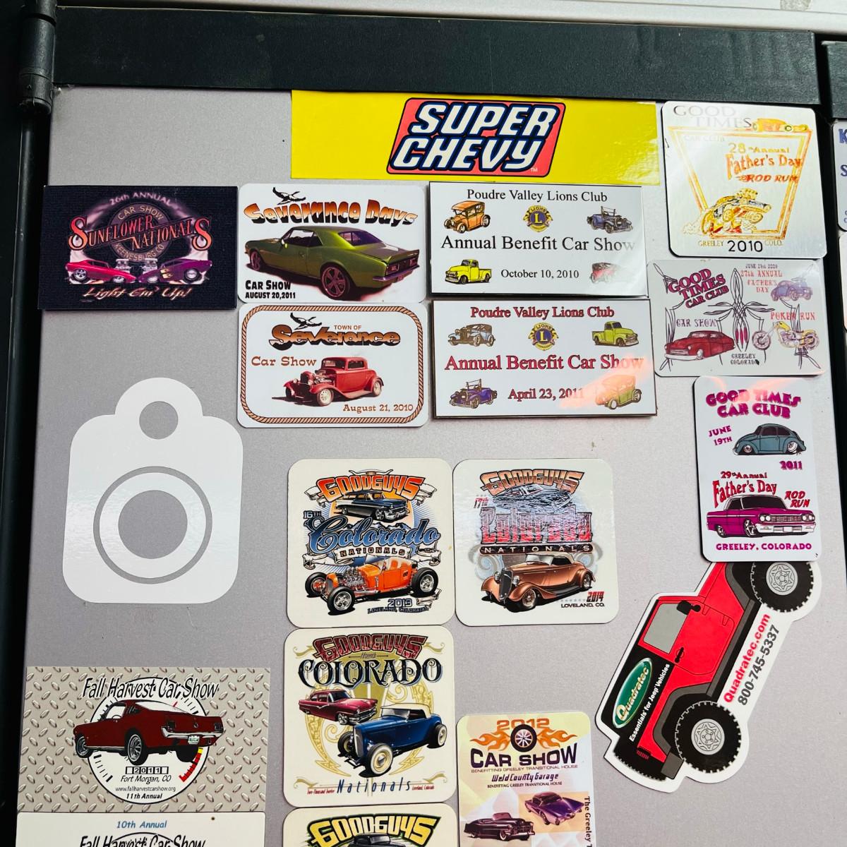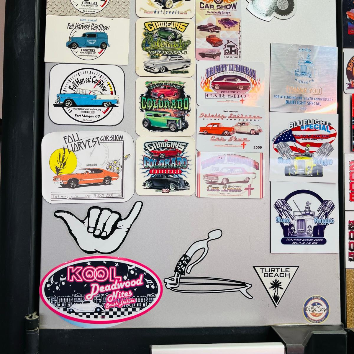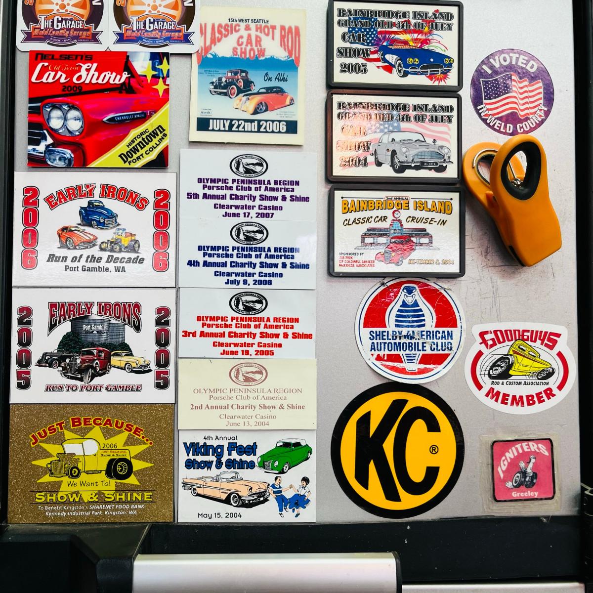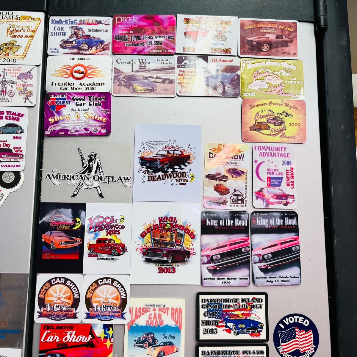We have two wall mount cabinets, and two under counter cabinets. This one is full of car show plaques.