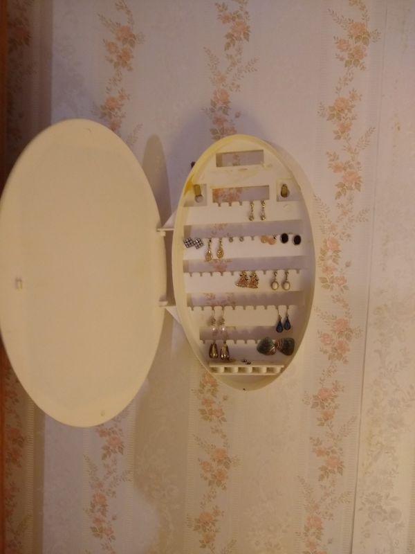 Plastic Wall Mounted Cabinet for Earring Storage (12" x 8"). Contents included.