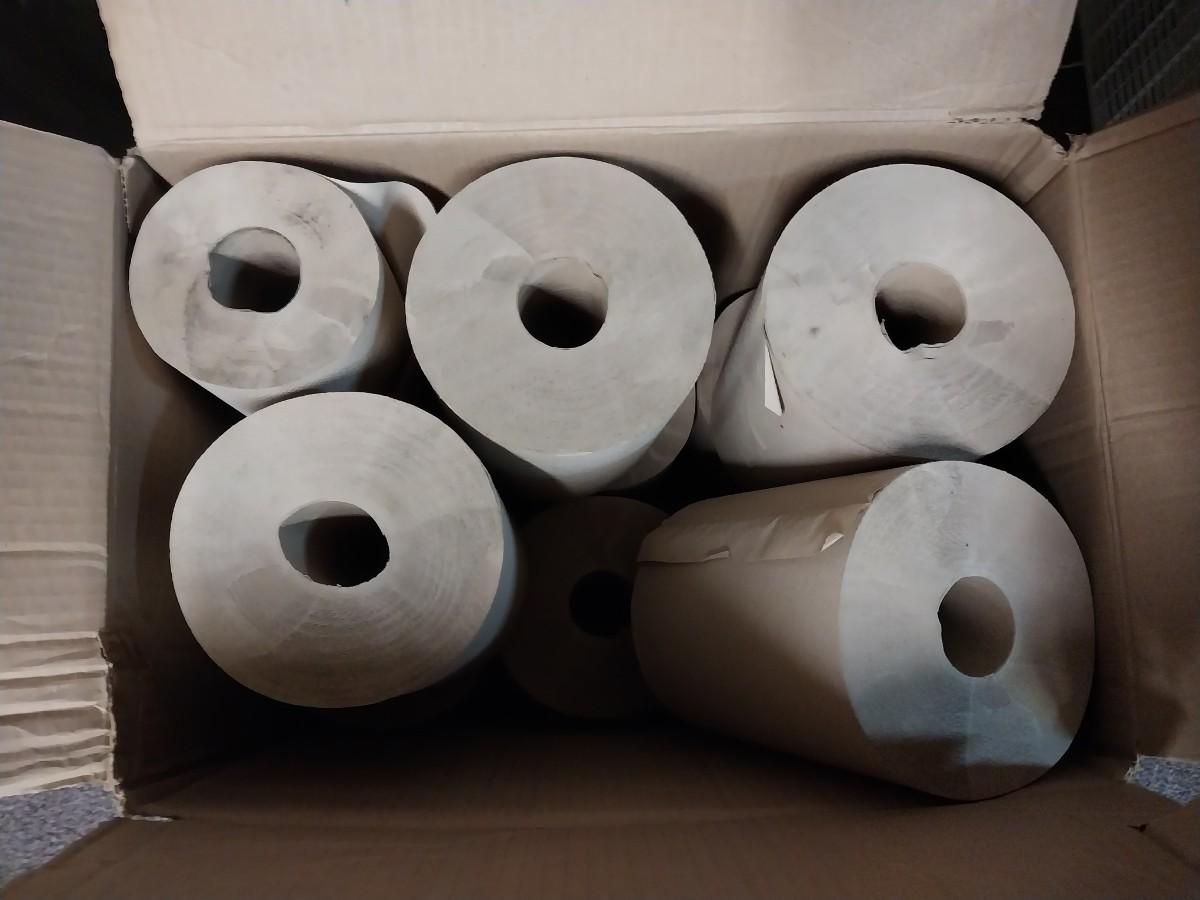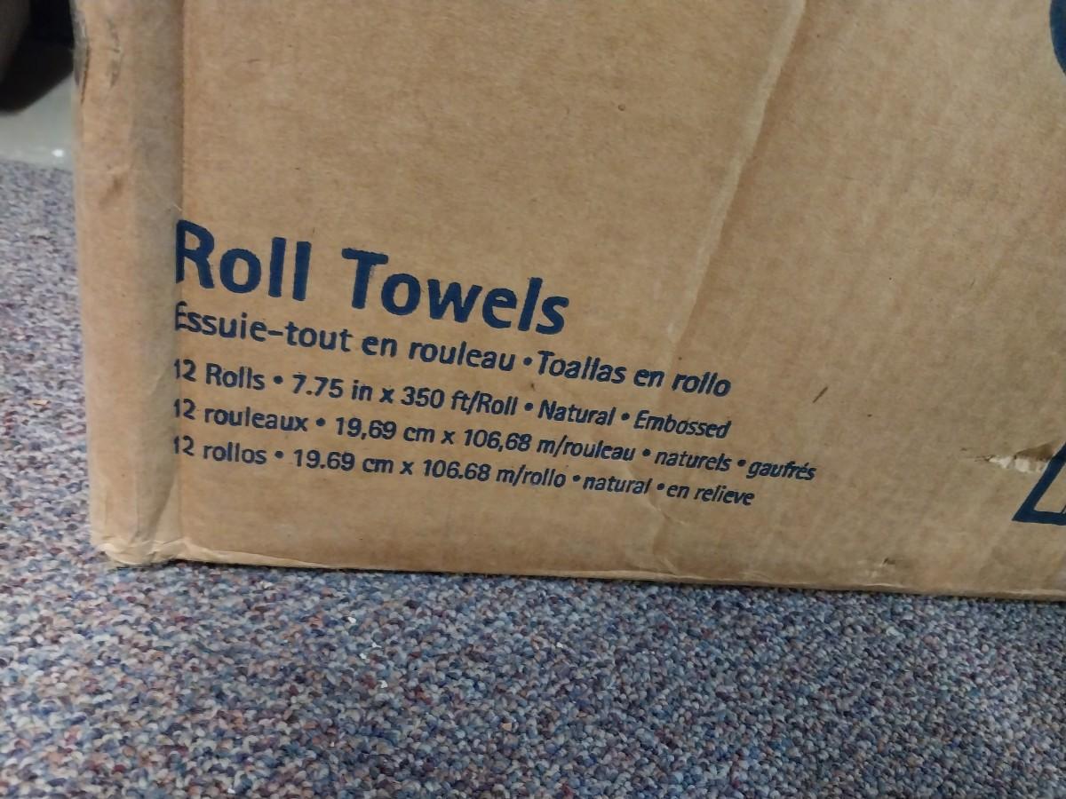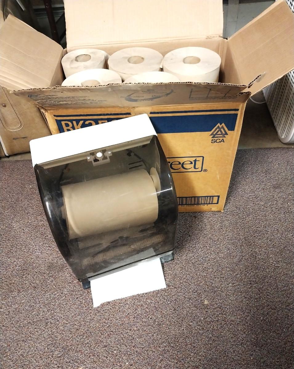 WALL MOUNTED PAPER TOWEL HOLDER AND ROLLS OF PAPER TOWELS