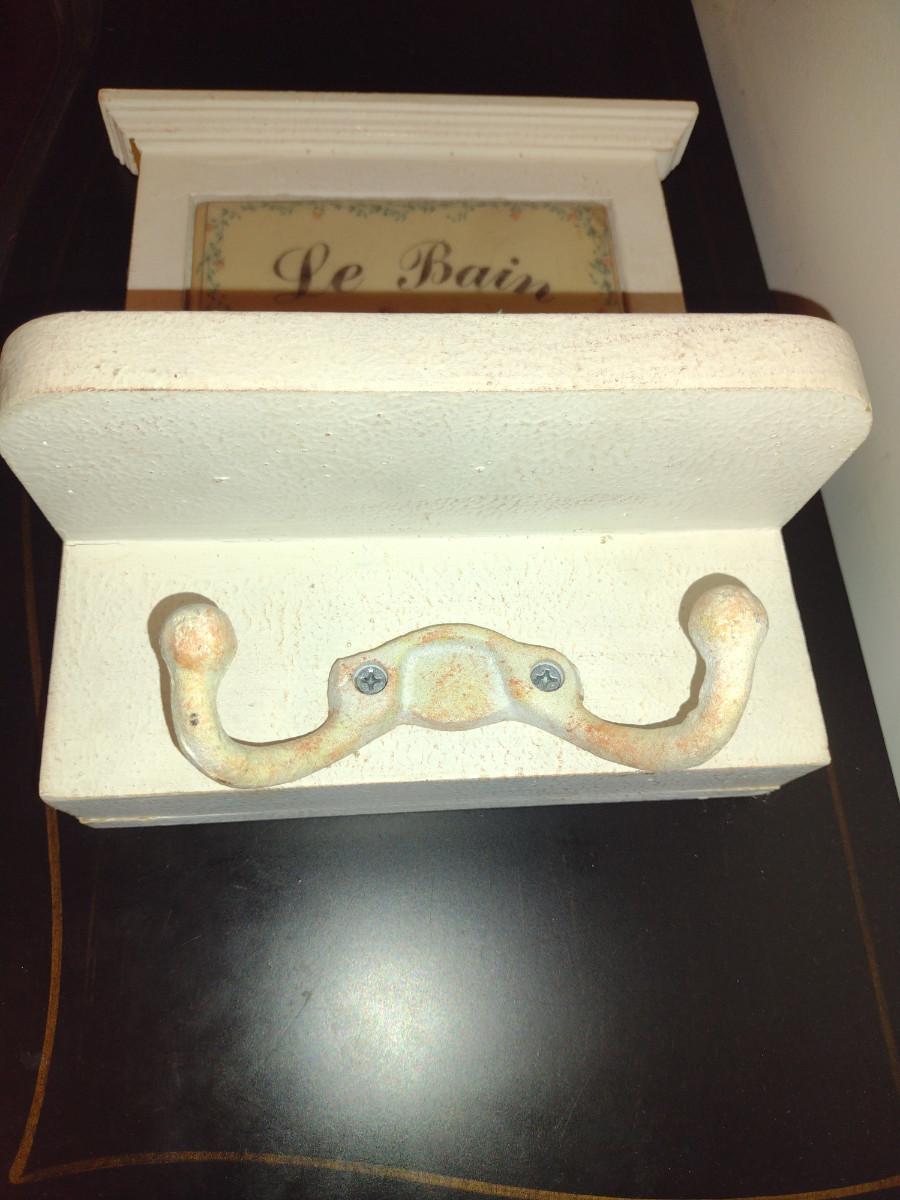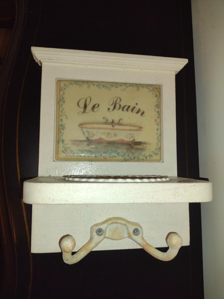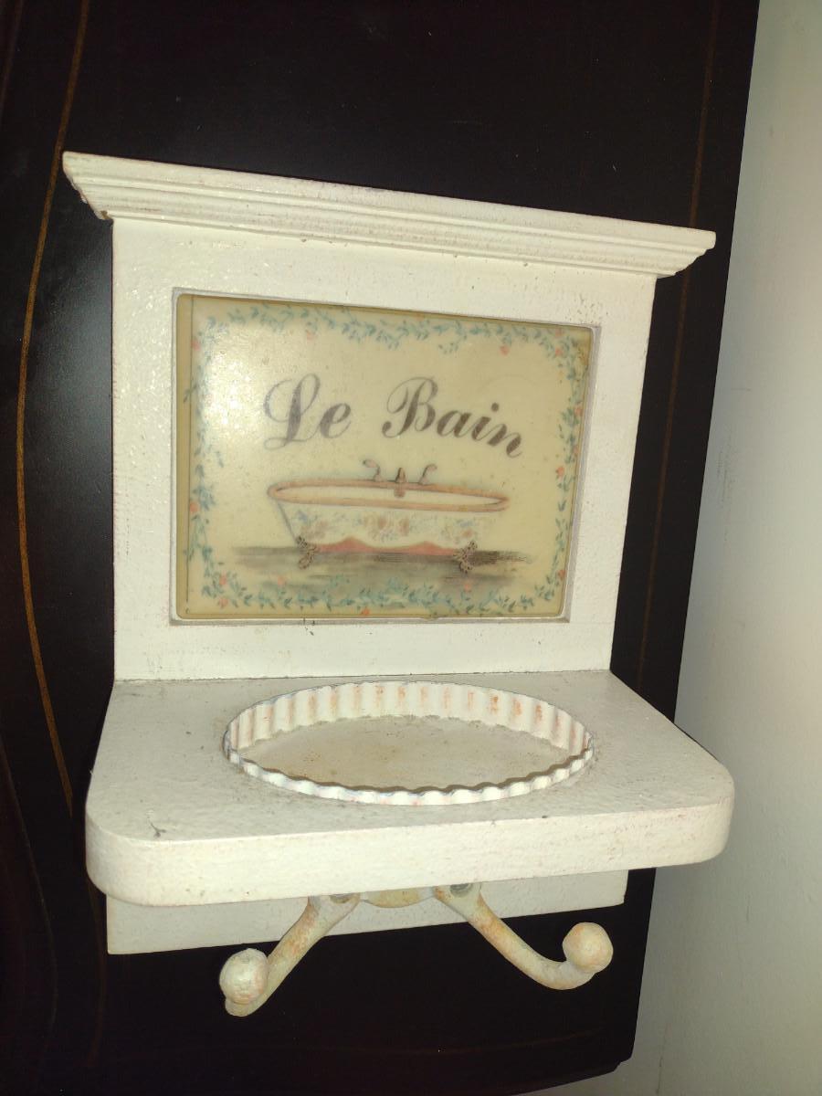 Wall Mounted Soap Holder with Towel Hook. One metal cover for hanging needs to be reattached- please see all pictures.
