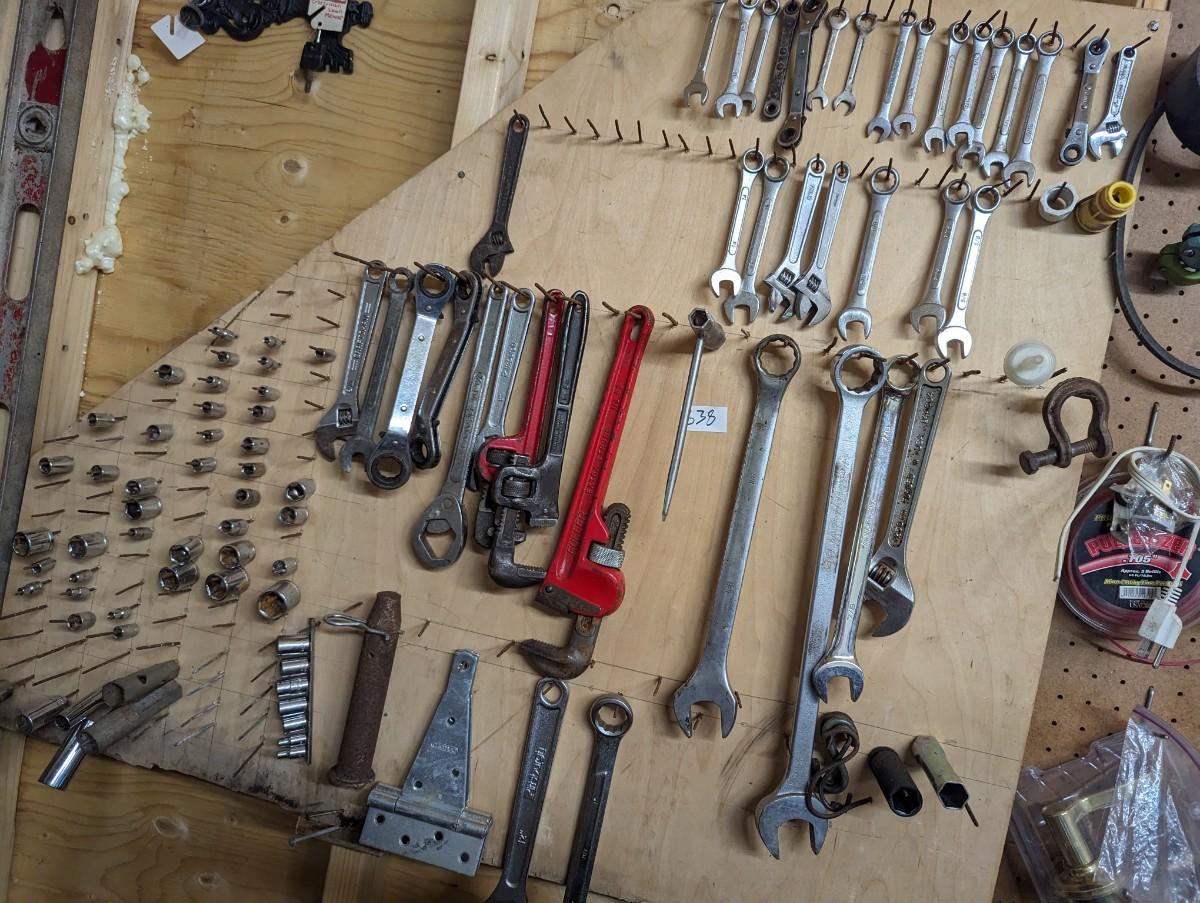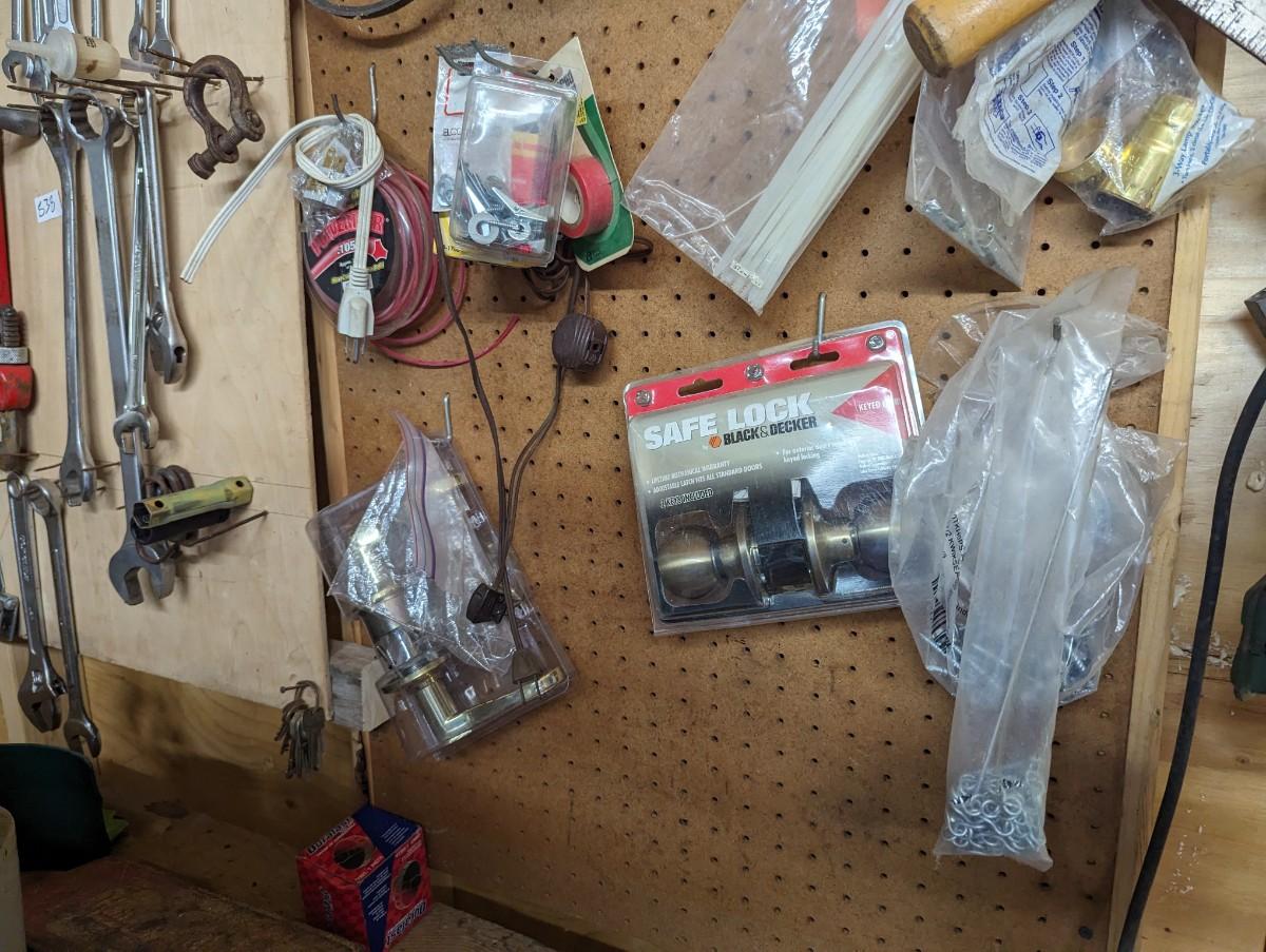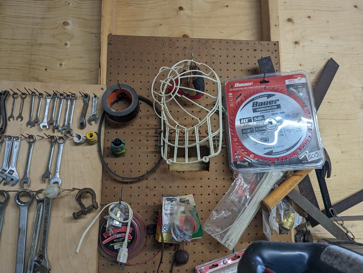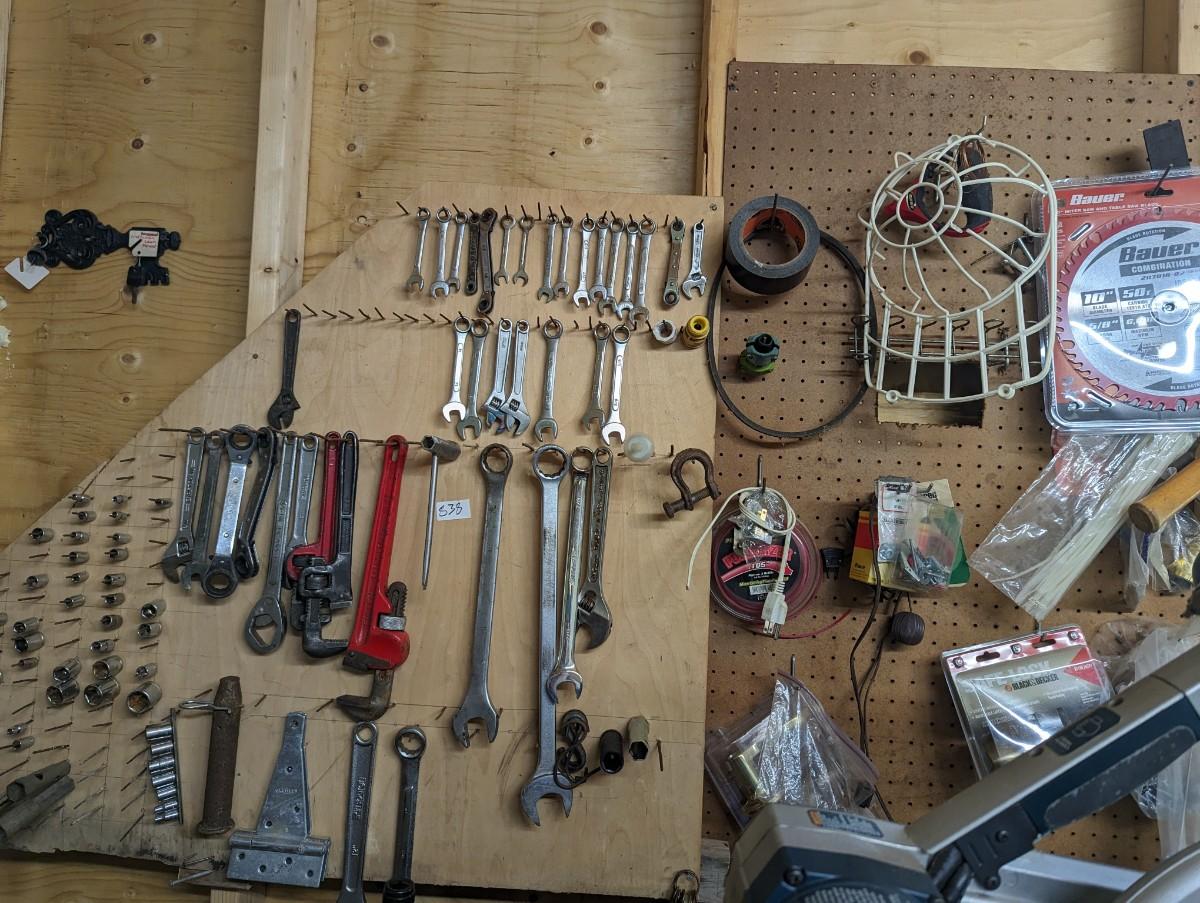 Wall Of Tools & Accessories. Will have to bring hand truck. Items are about a hundred yards from the driveway.