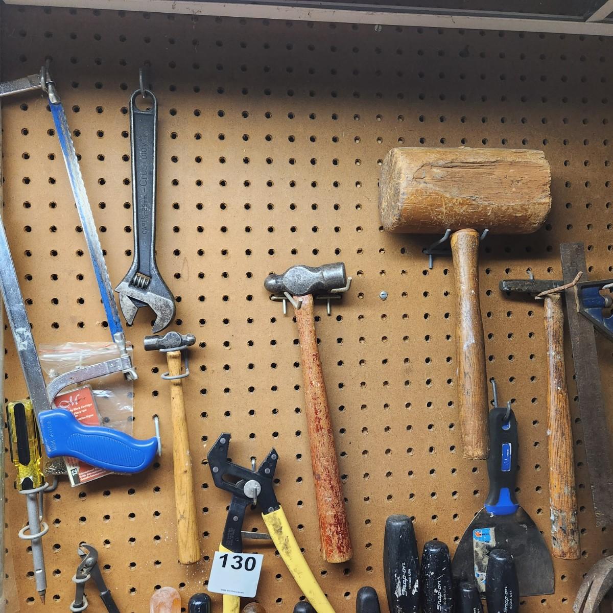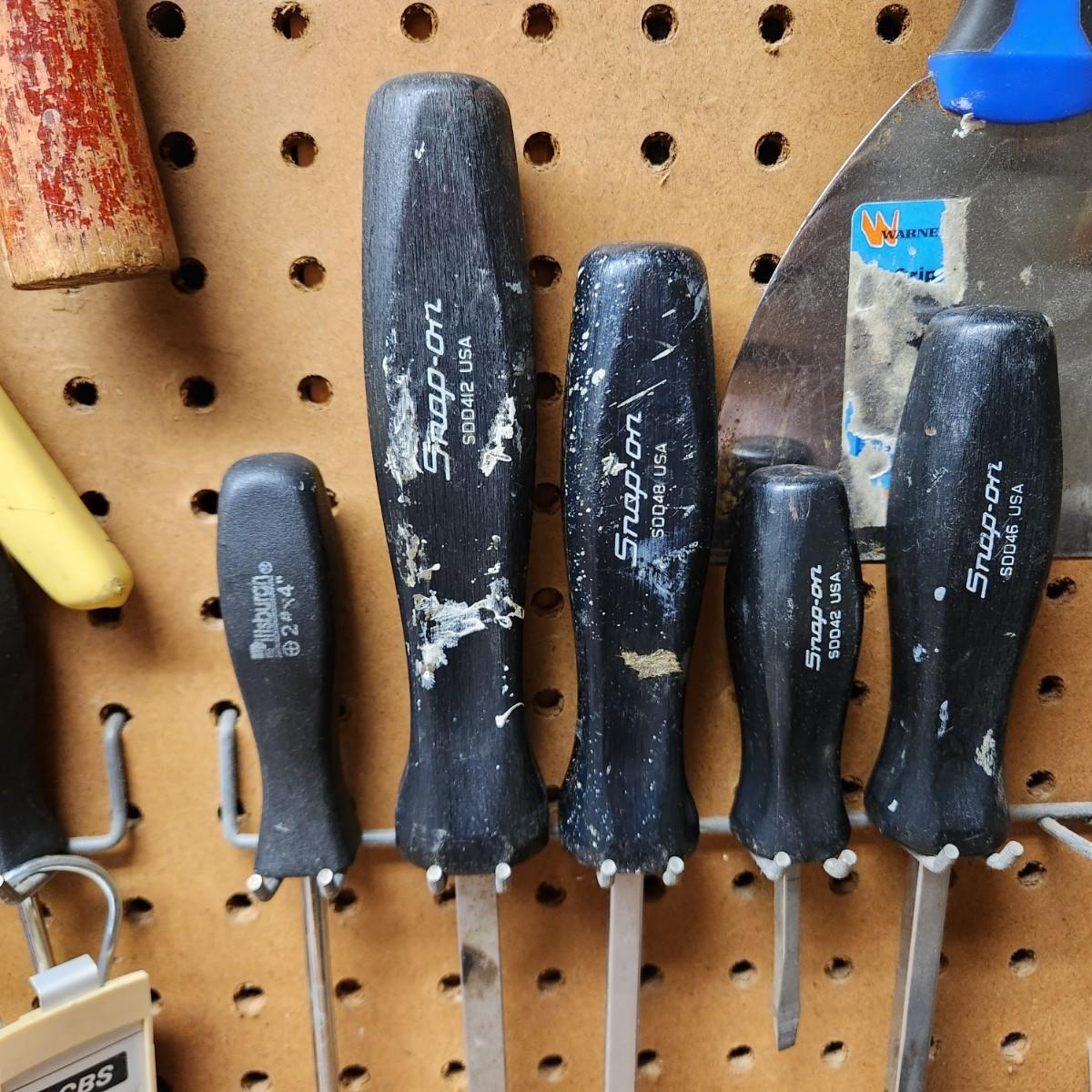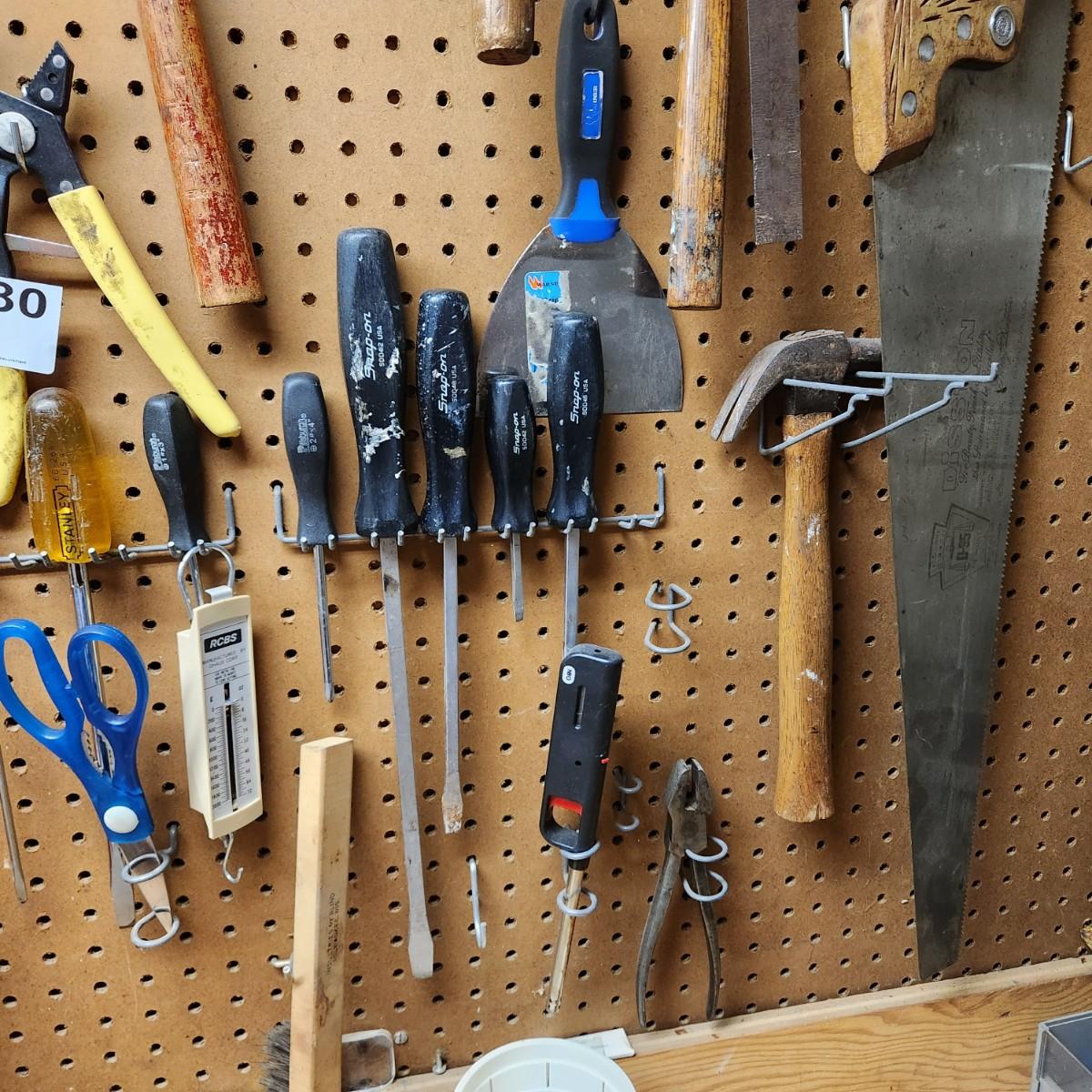 Wall of Various Tools Snap on Drivers , Hammers, Saws,