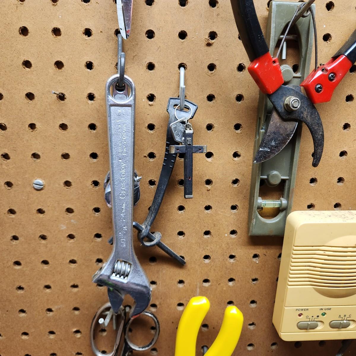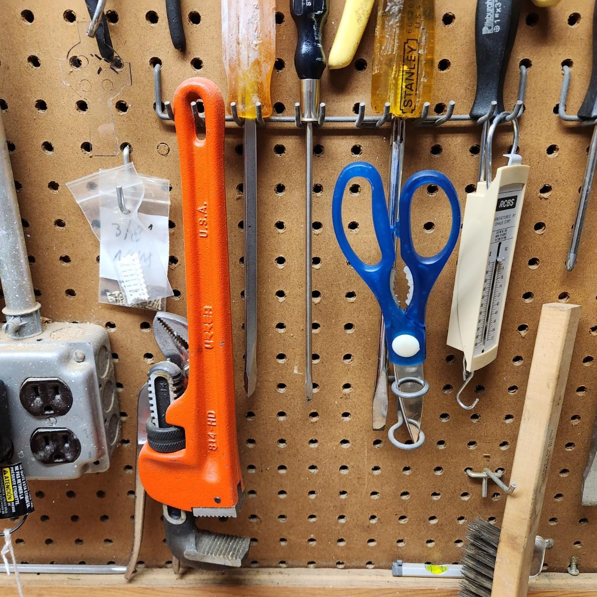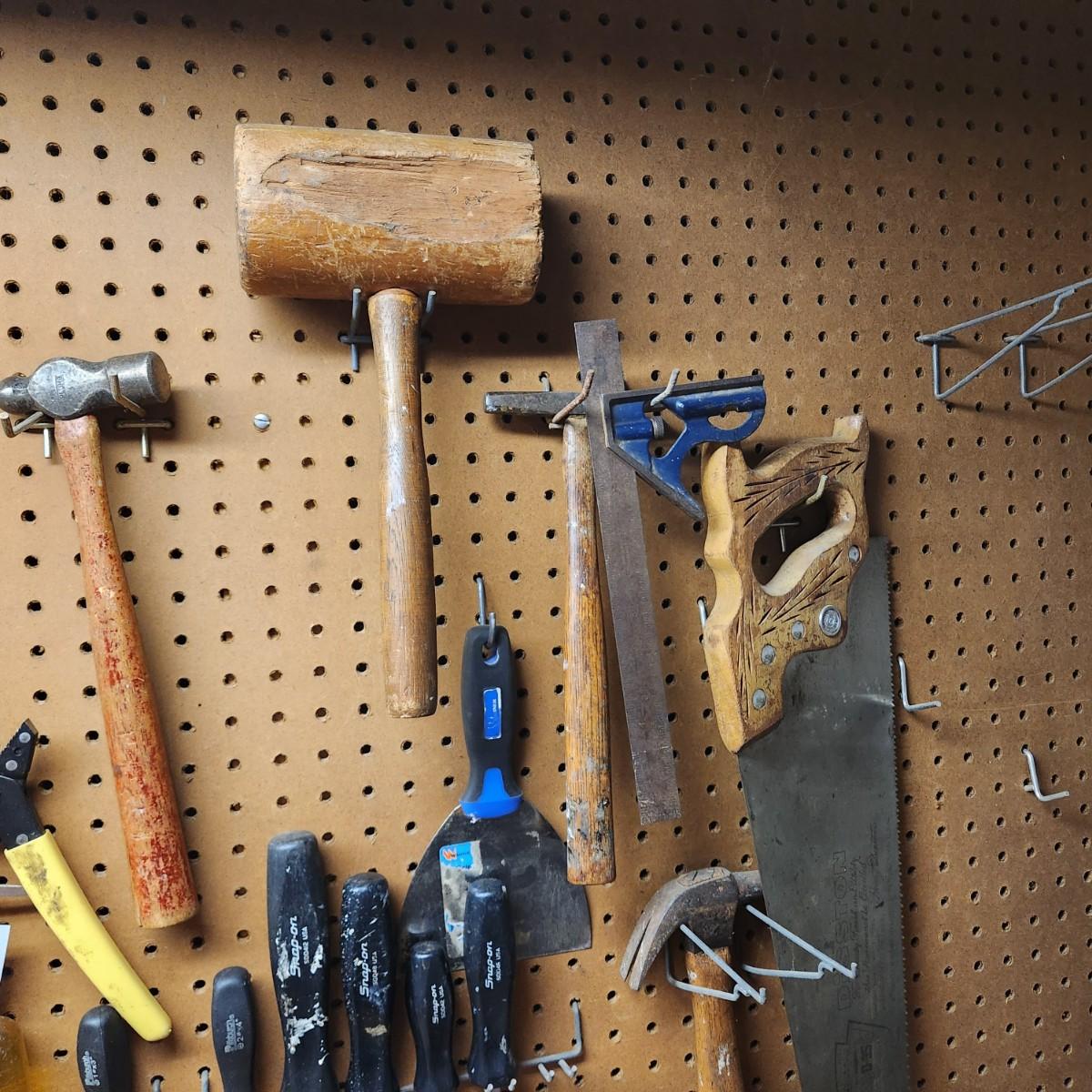 Wall of Various Tools Snap on Drivers , Hammers, Saws,