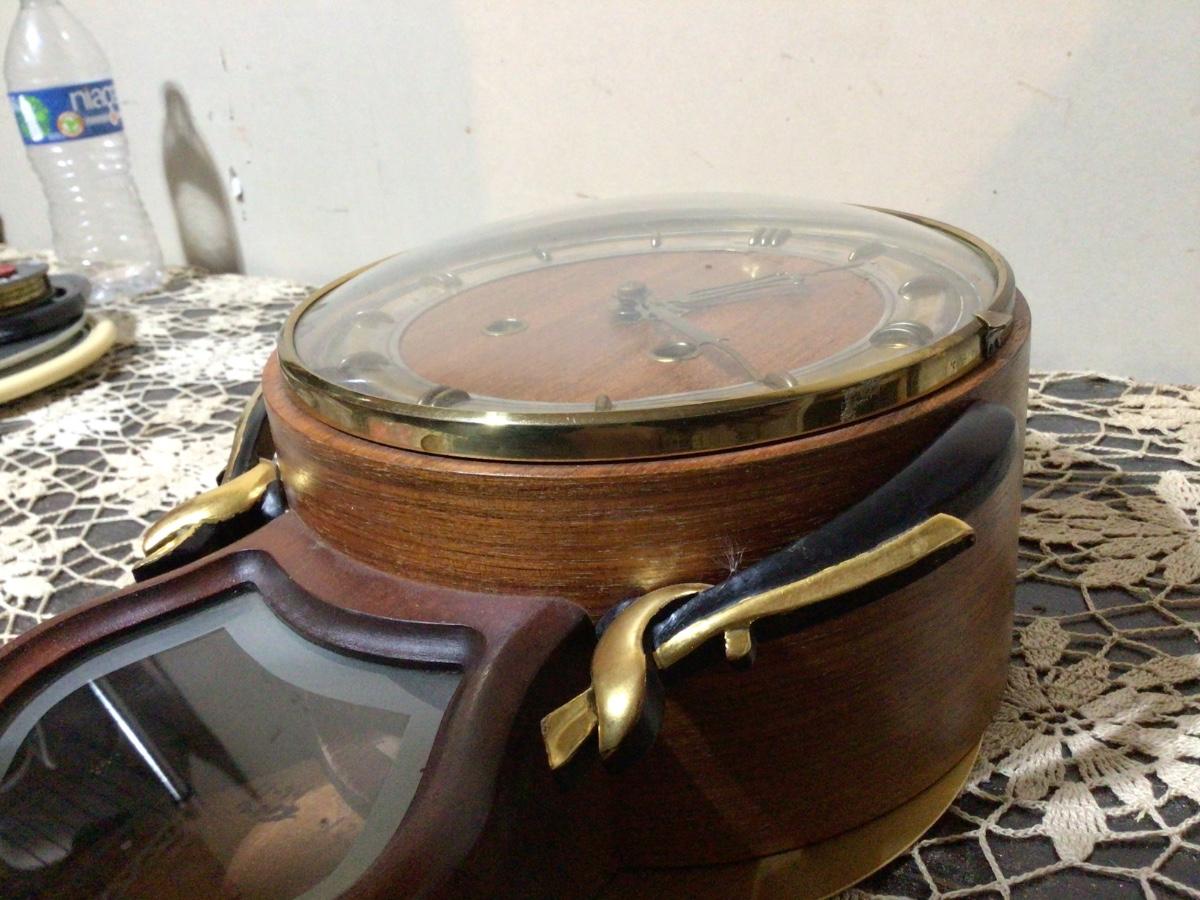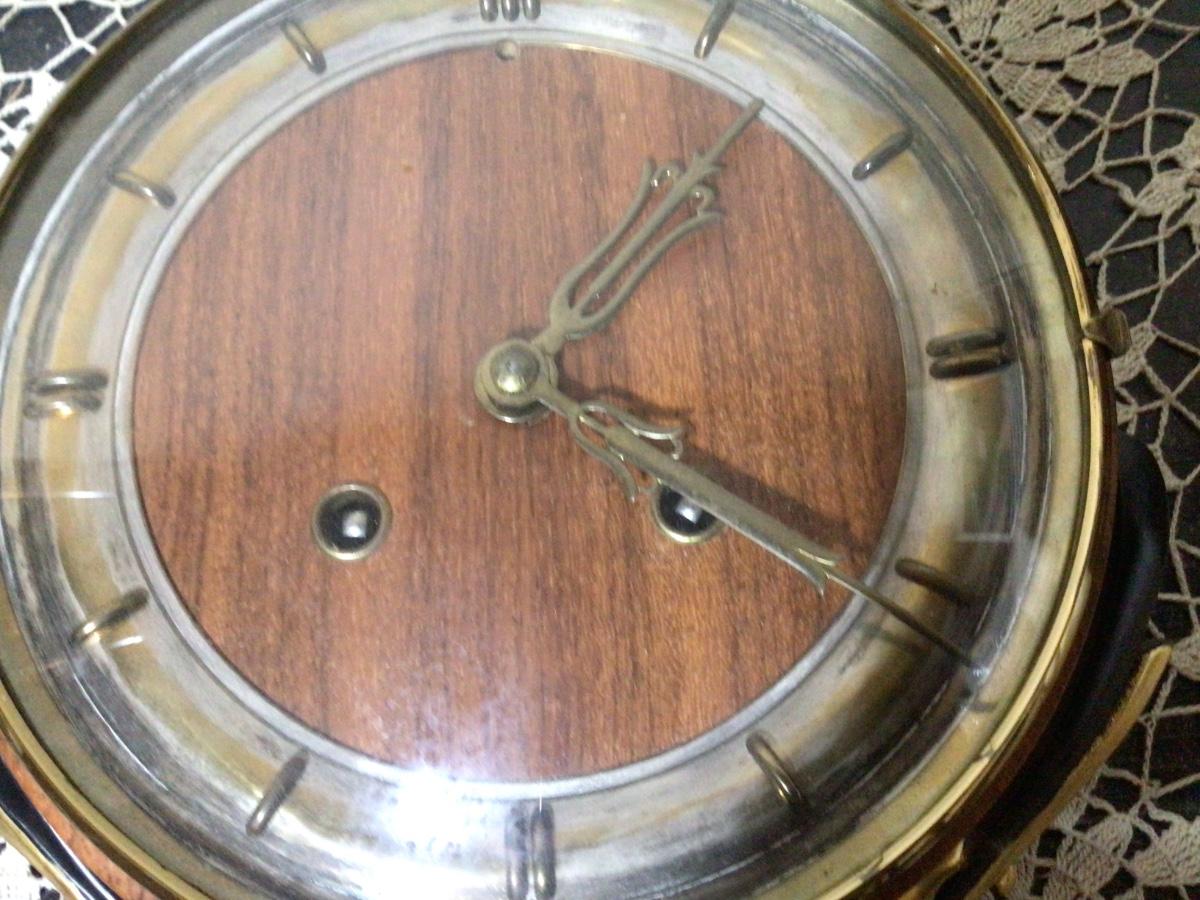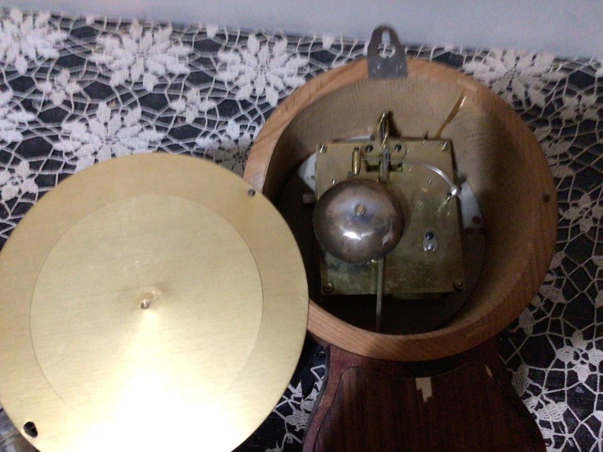 This is a Great Wall hanging pendulum clock. It is made of wood and metal and has pendulum, but no key. Currently is not working, but could just need a cleaning.